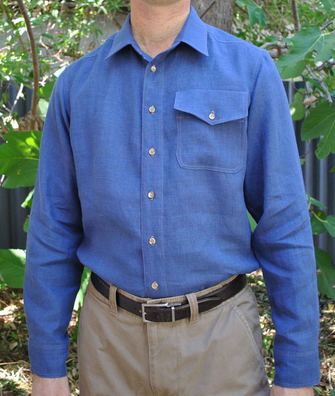 Craig’s shirt, Burda 7767 modified, blue linen, details here and my review of this pattern here
