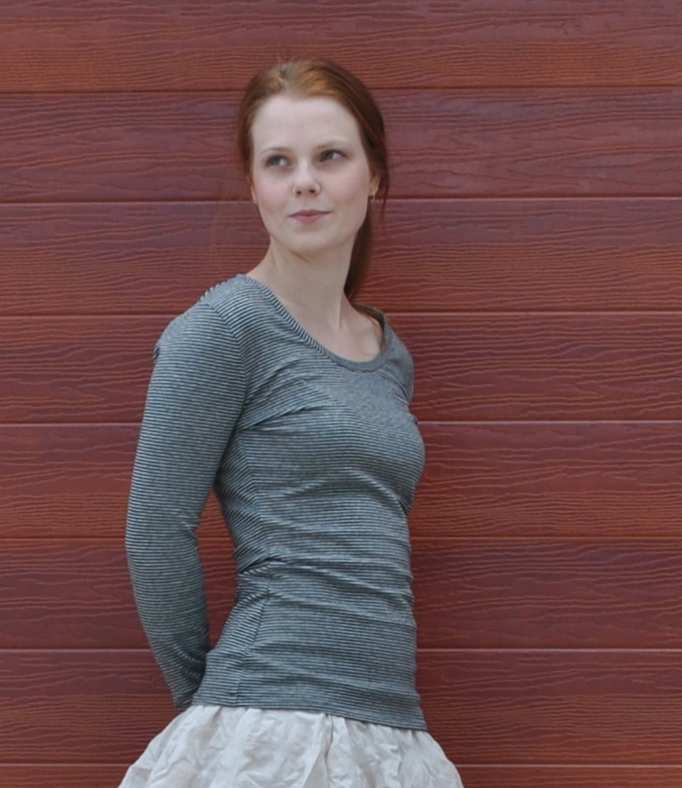 Cassie’s Tshirt; self-drafted grey and black striped cotton jersey, details here