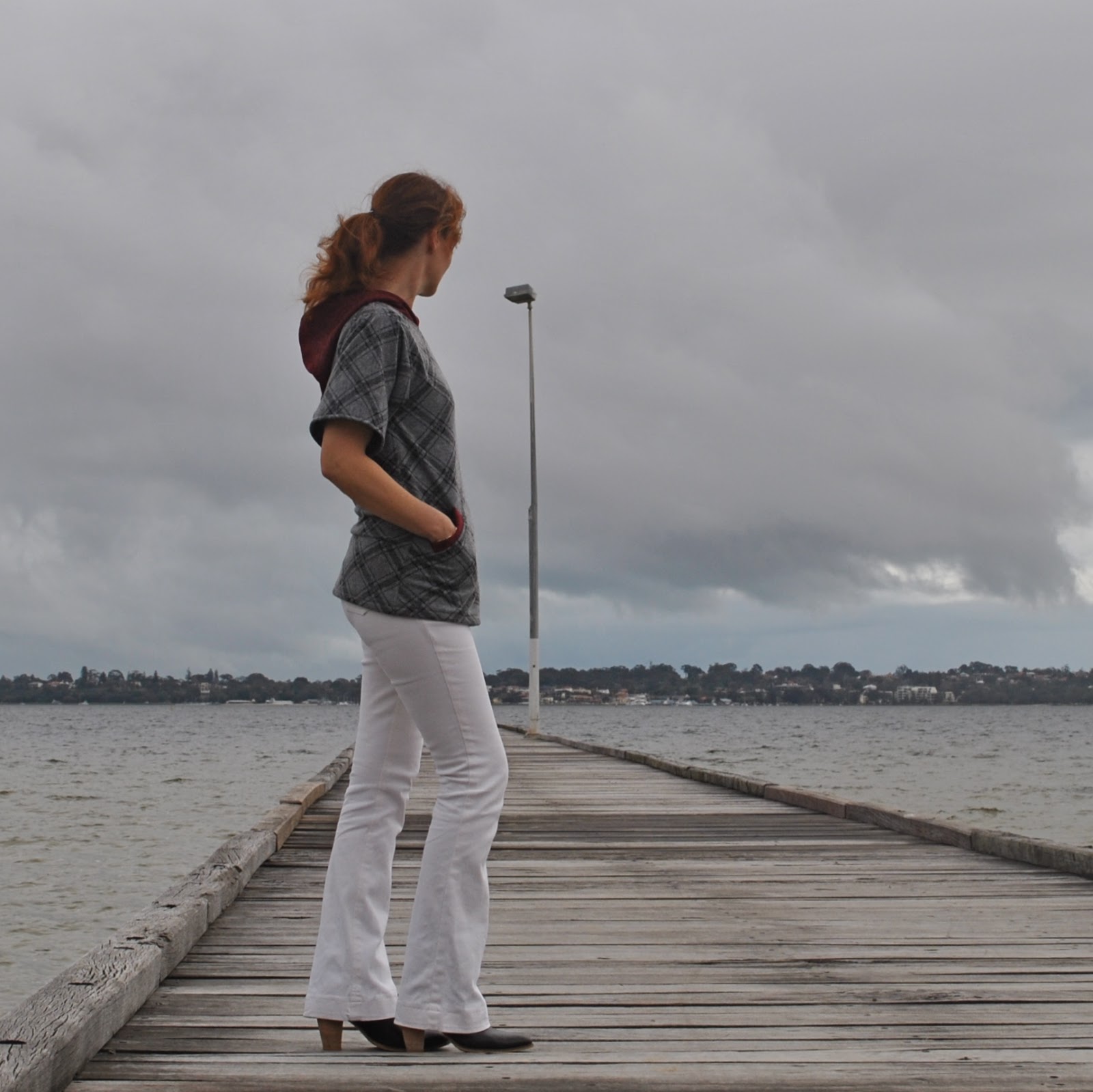 I love it with the white jeans, and your pictures against that gray sky are beautiful!