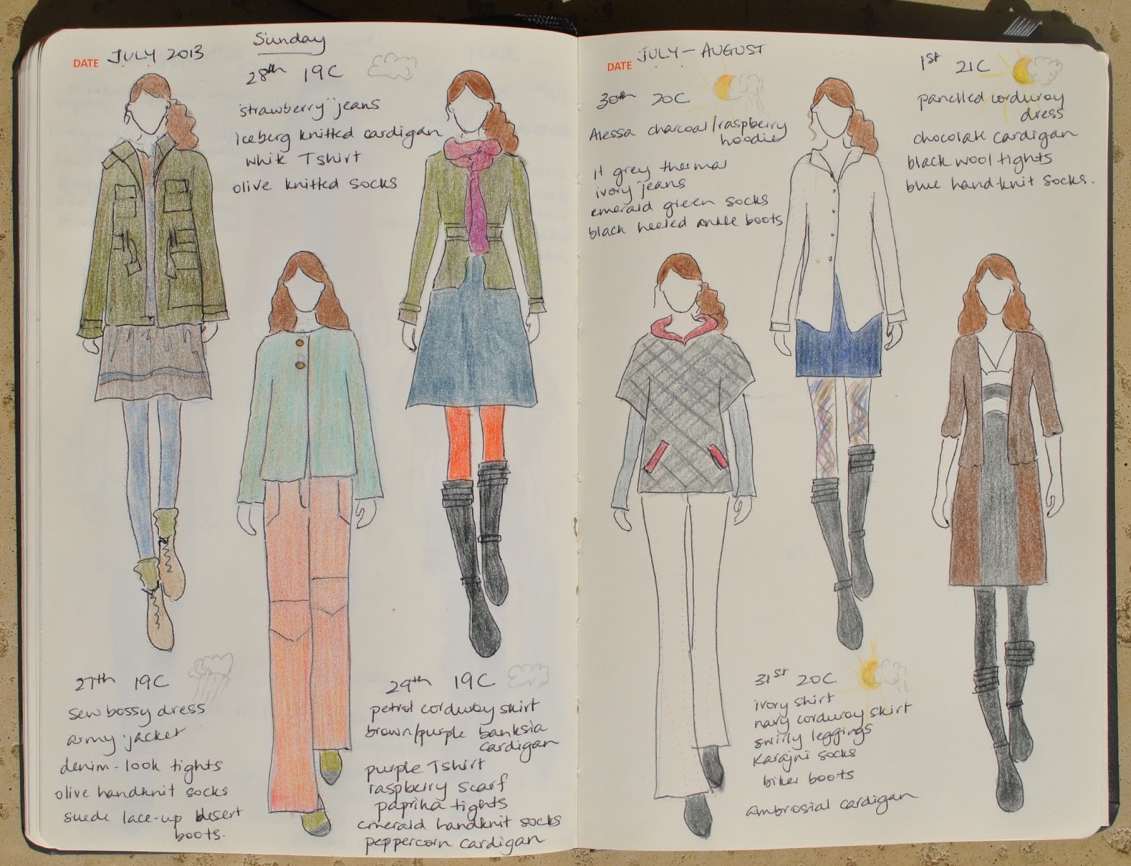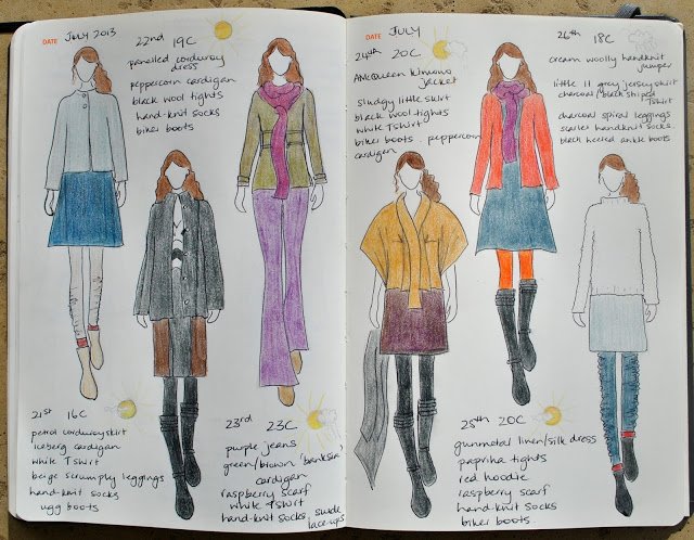 (I’ve pledged to wear only clothes handmade by me this year and to sketch my daily outfits in my Fashionary.  I’m calling this the paper doll project)