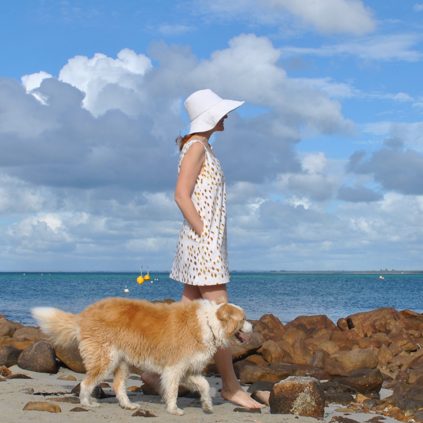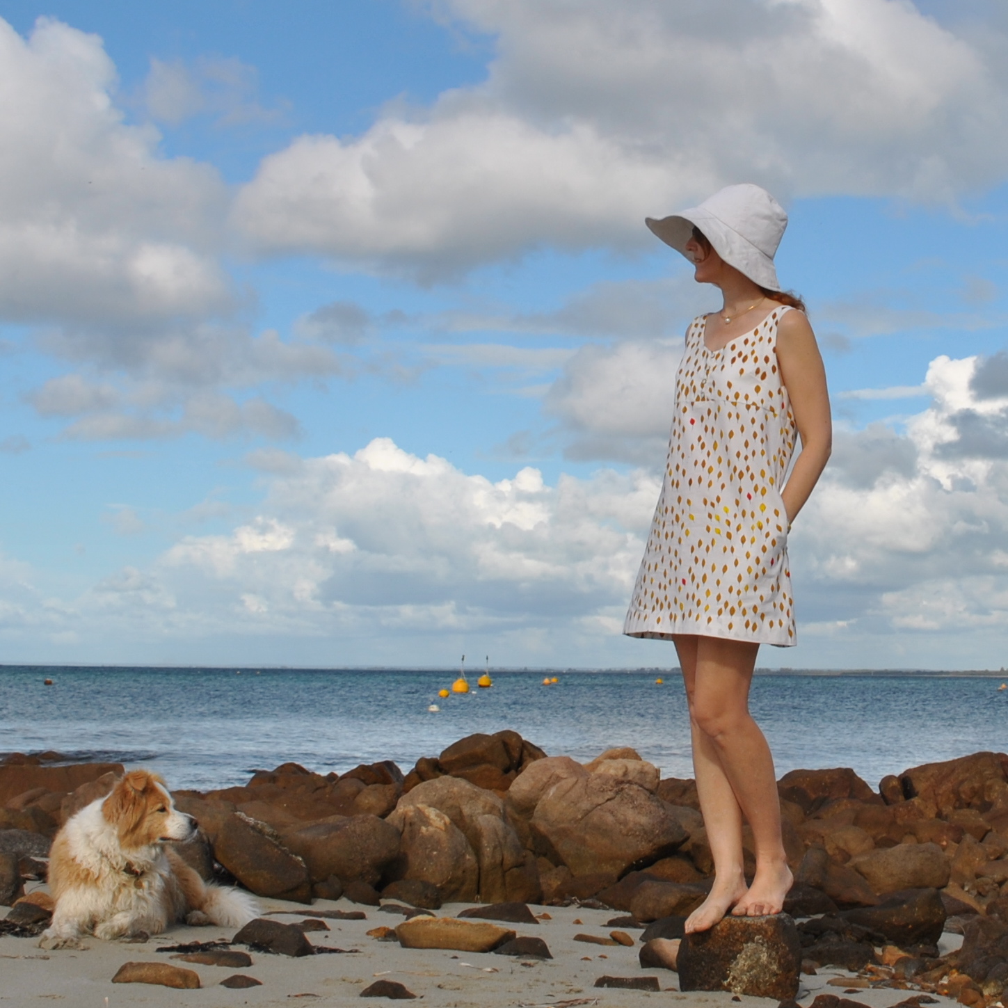 13. Your little sundress is perfect beachwear! I think your tip about cutting the fabric (or at least tracing the pattern pieces onto the fabric) would also be helpful when doing embroidery or any type of embellishing.