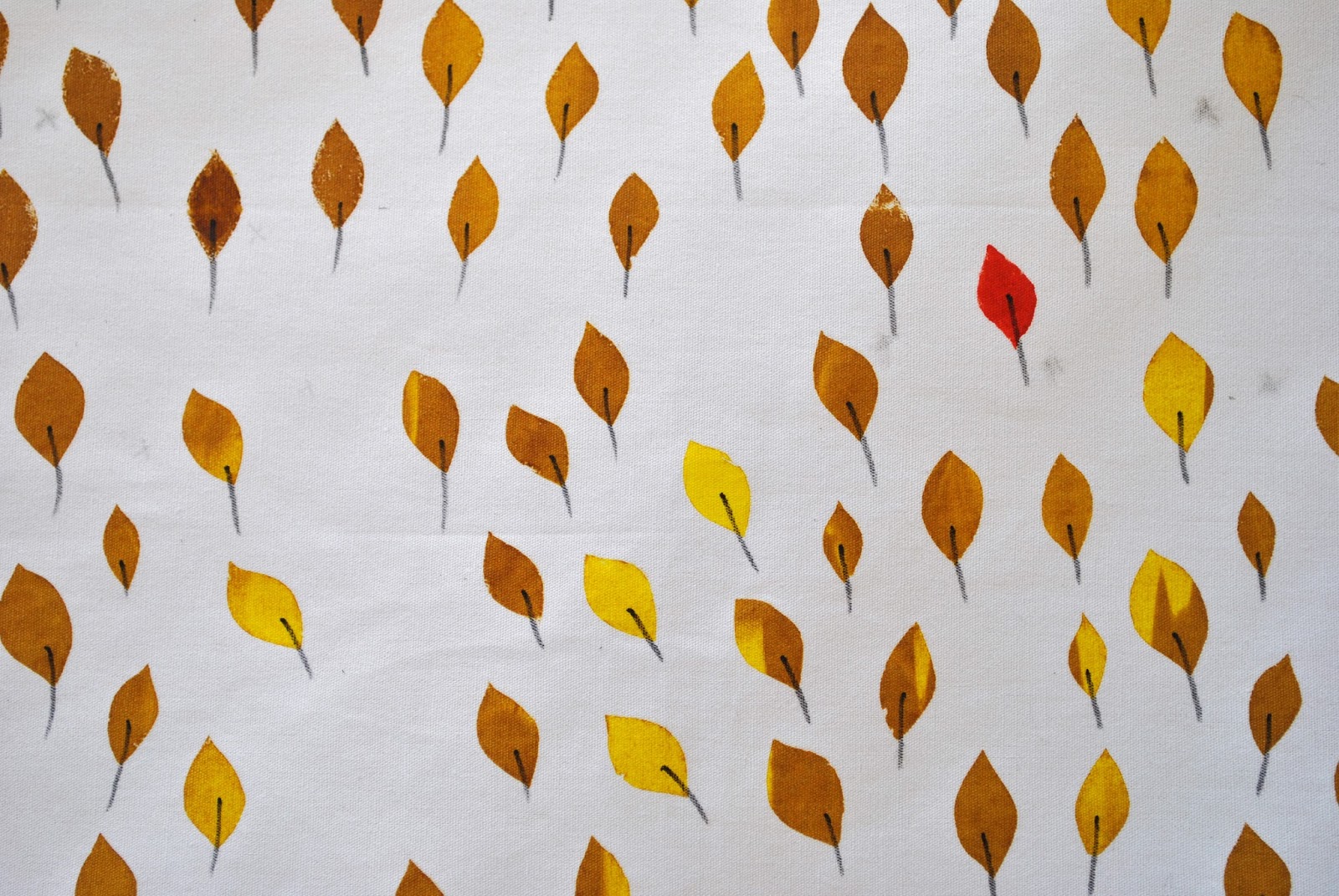 I made a sundress using my autumn leaves fabric, screen-printed by me here.  Those who like wonky weird imperfect prints are going to like this, if you don’t, then avert your eyes!