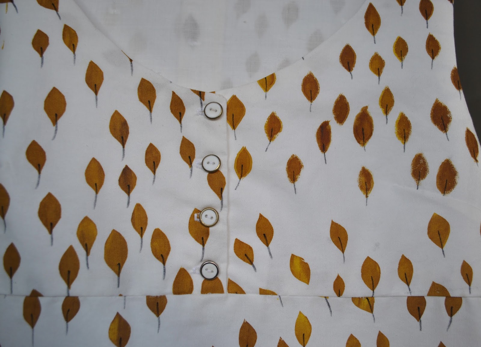 37. I thought this sundress looks perfect! The colours of the leaves seem to shine in your photos, because they are in different shades of yellow to brown.. The shape and length is suited to warm sunny days and I like how you modified it from that dress in the book. I like taking a pattern and working around it and ending up with something else.