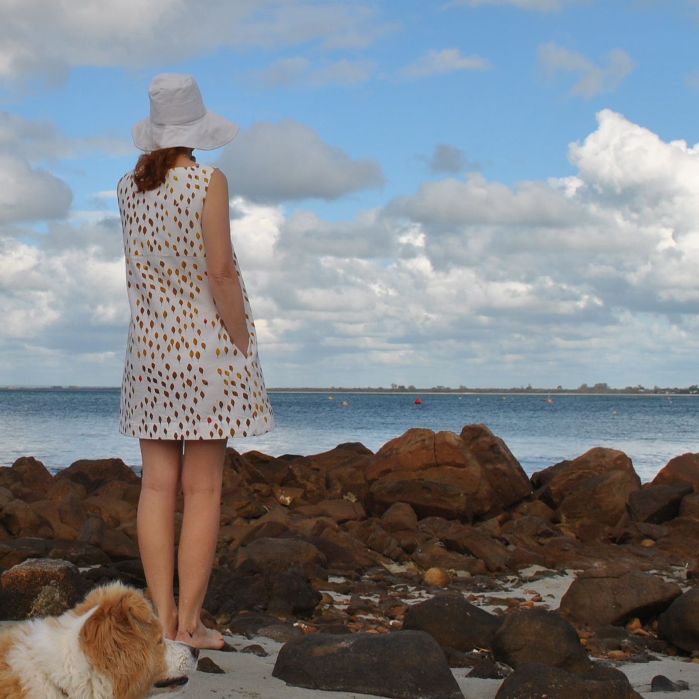 I’m a bit meh about this dress, partly because my print is … funny; and partly because the fabric itself is a pretty poor quality.  It is a bit stiff and almost calico-like in texture.  Now I’m kinda kicking myself I didn’t take the risk and buy a finer quality cotton in the first place, problem was, I had no confidence in myself and started out with the assumption I was going to stuff it up.   I will wear the dress, because it’s airy and cool and will be great to have in the wardrobe in the hottest days of summer when I just want to grab something casual, and I’m hoping it will soften up over time with wear and washing.  The thing is, I usually judge my self-mades by posing the question; would I buy this if I saw it in a store?  And realistically I would probably pass this over, laughing at its hideousness.  Oh well.