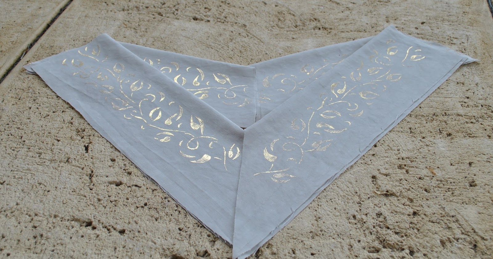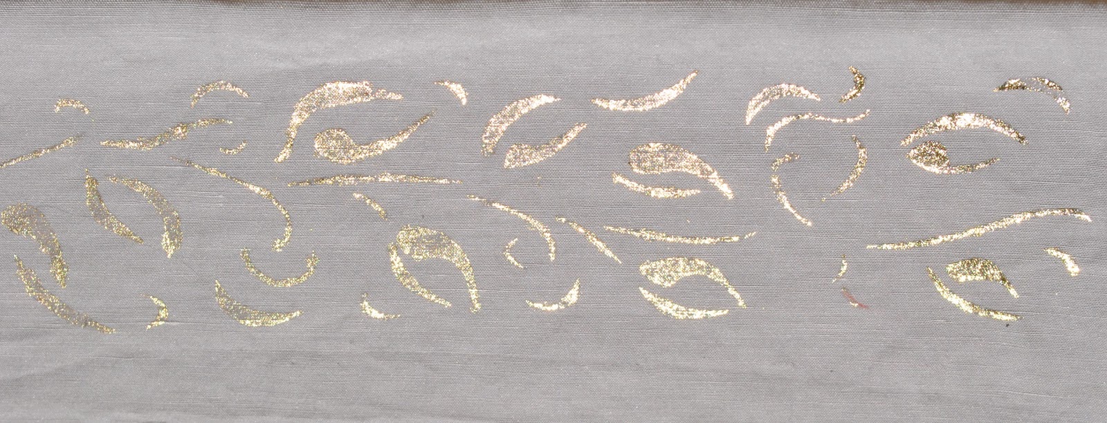 Beautiful! Gold on silk, how very elegant, and I like the vine-like shape of your stencil!