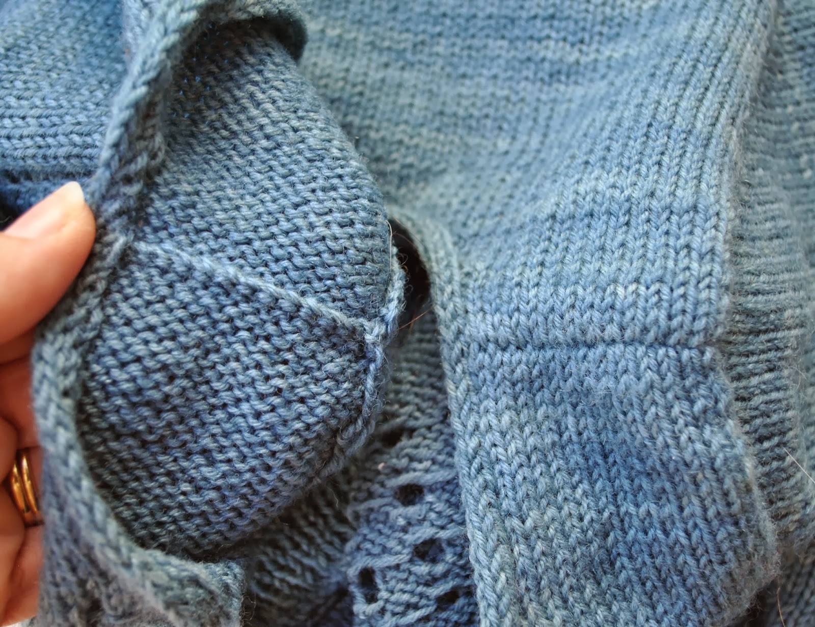 The sleeves are knitted by picking up the stitches and knitting short rows with wrapping and turning to form the sleeve cap. LOVE this feature and I think it makes for a really nice attractive finish; far smoother and sits flatter than a stitched in sleeve would be.
