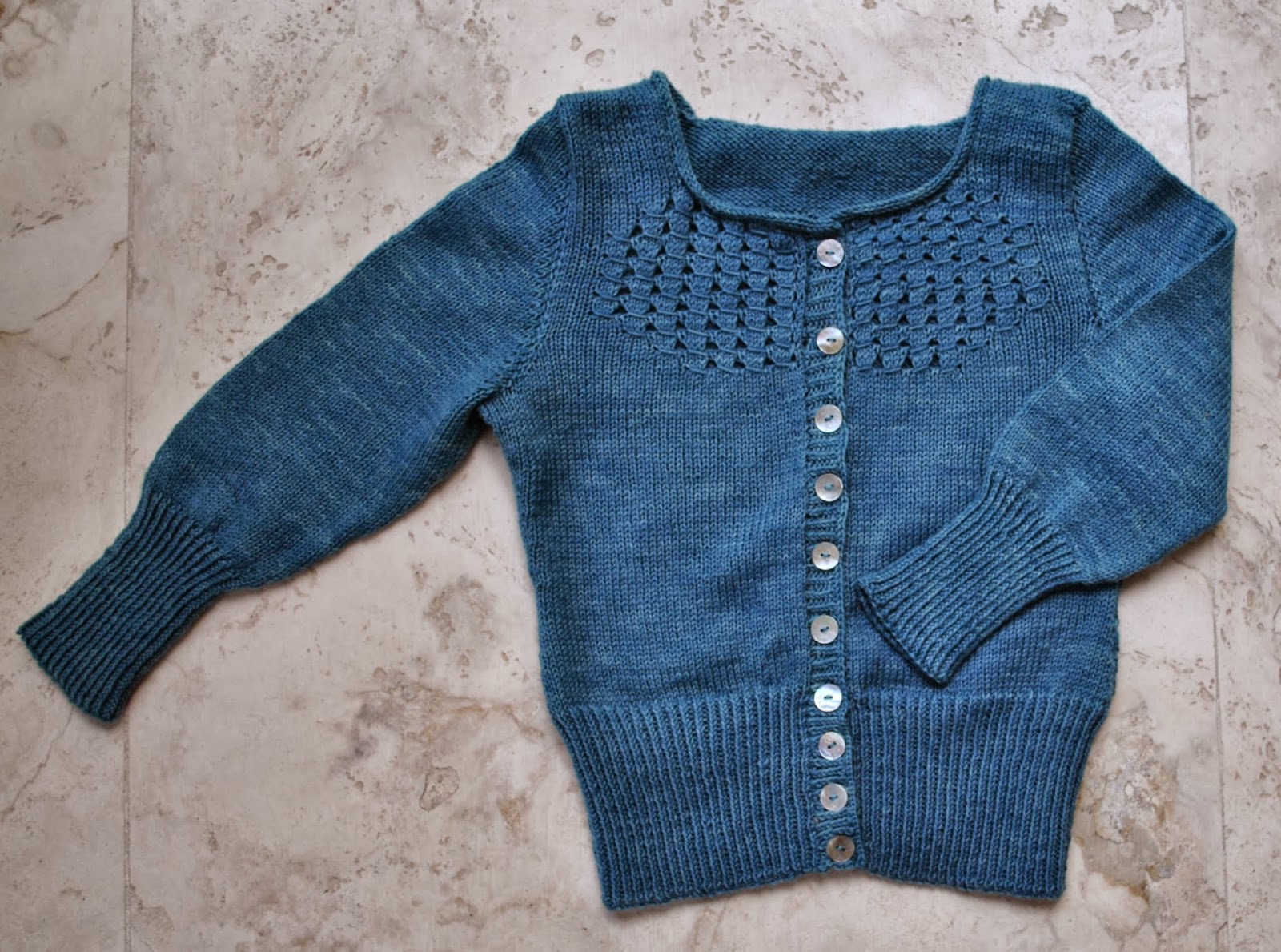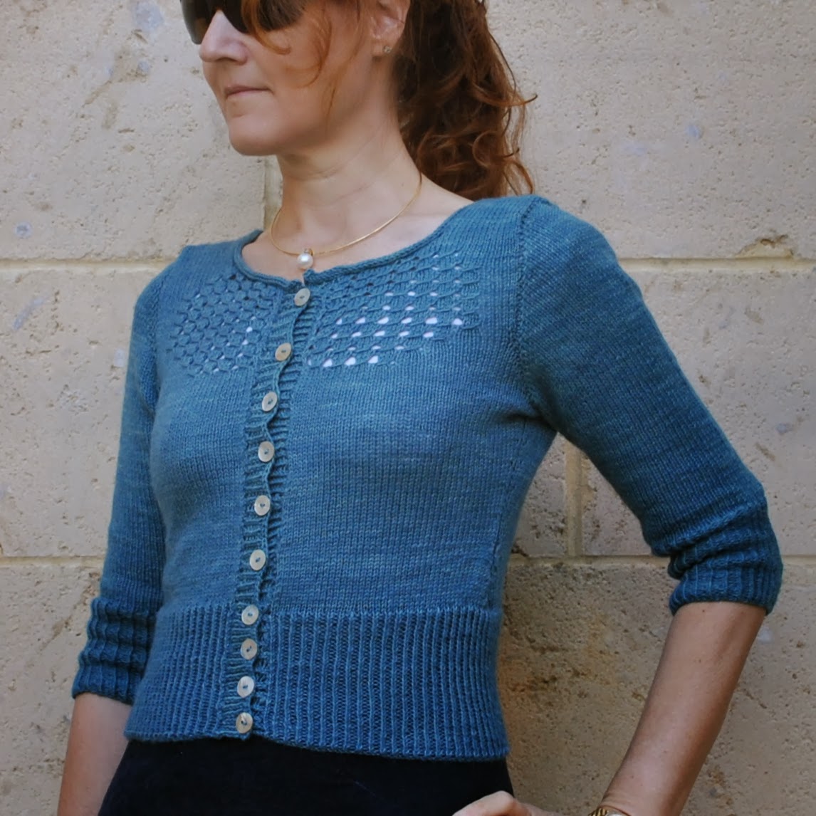 What a pretty little cardigan – great colour and shape for you. I'm starting my winter knitting for winter 2014 already – wouldn't you know it :).