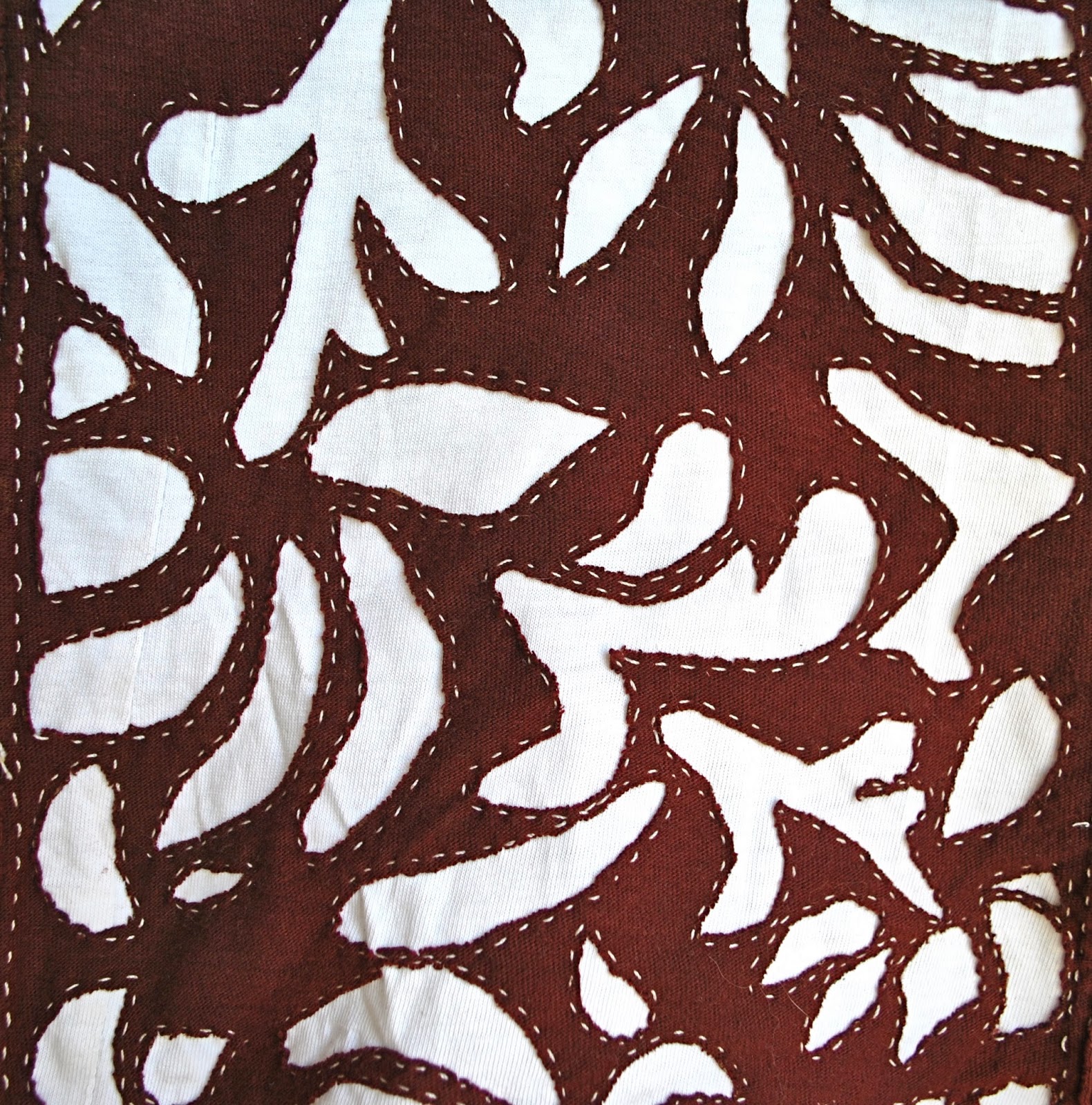 I have used other brands of thread for the stitching with good durable results – upholstery thread, or heavy topstitching thread. On my own clothing I mostly use the hand stitching for the reverse applique, and for the edge bindings, and sew the actual garment seams by machine…