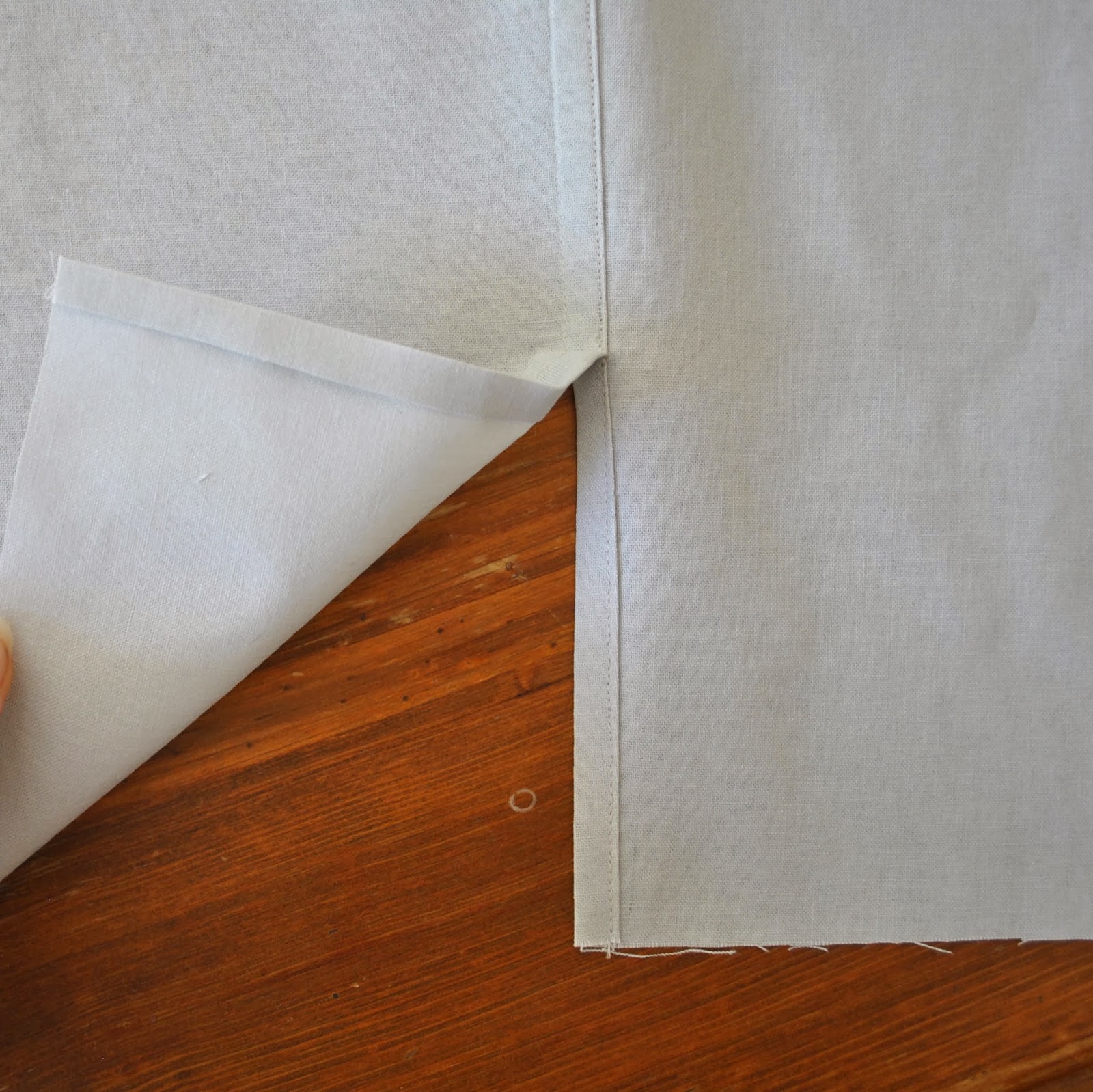 Hem the lower edges. Remember: the underside split is hemmed facing out, so mind you don’t accidentally stitch the hem on the outside on this side! I almost got caught here the first time!