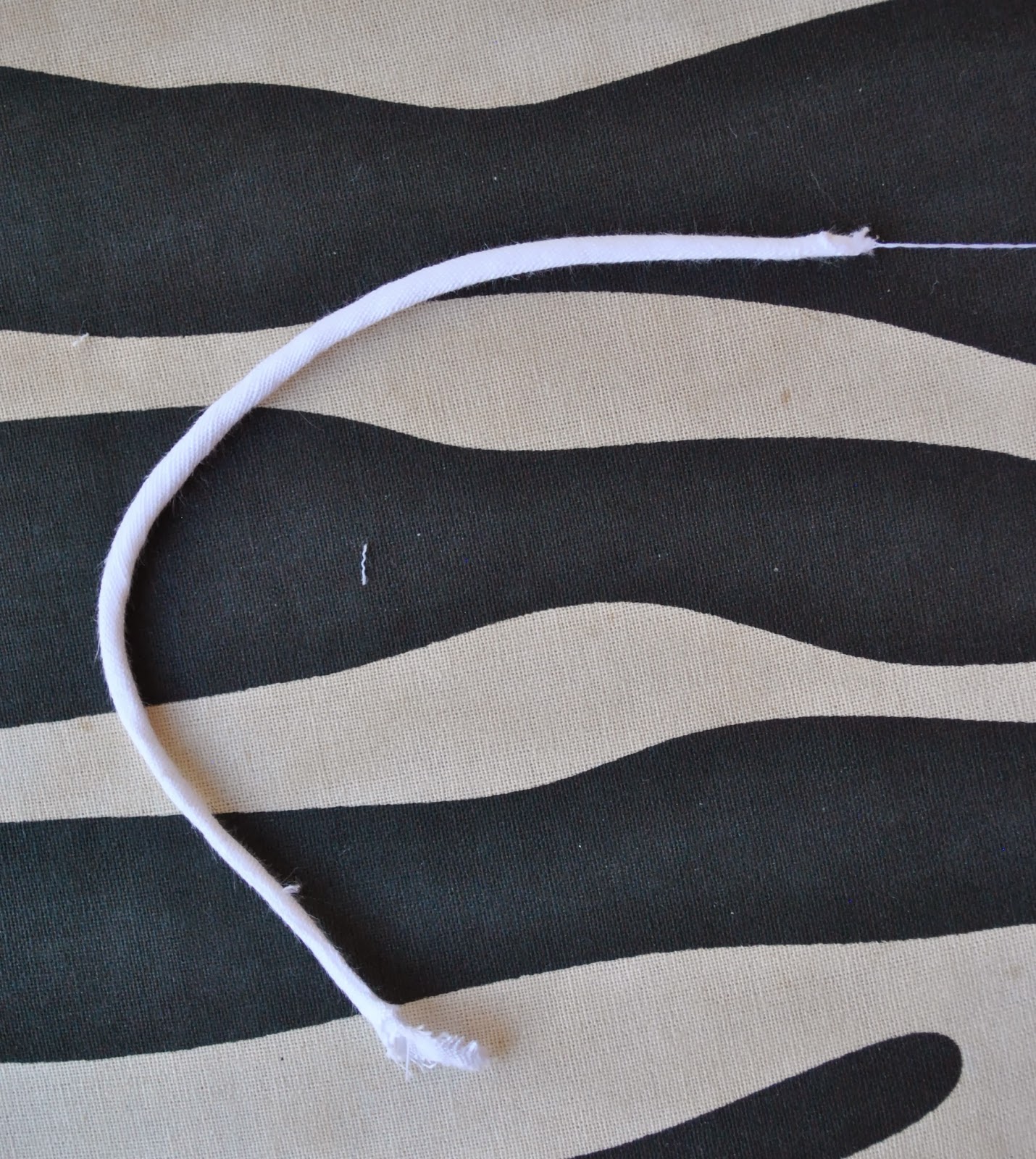 Stitch the bias strip, and cut the stitching threads leaving a long length, at lease as long as the bias strip itself. Thread the long end through a needle, and with blunt end leading, pass it through inside the strip. Turn the strip right side out.