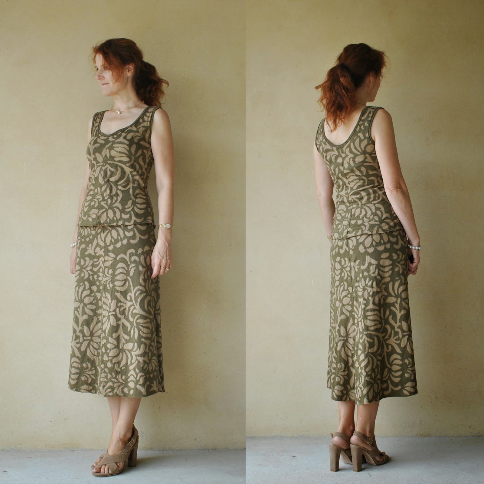To summarise: the eleven pieces comprise three 3-packs; that is, three sets of three items that go together; and two wild cards. My three packs each have one skirt and two tops, and my two wild cards are a dress and a coat.