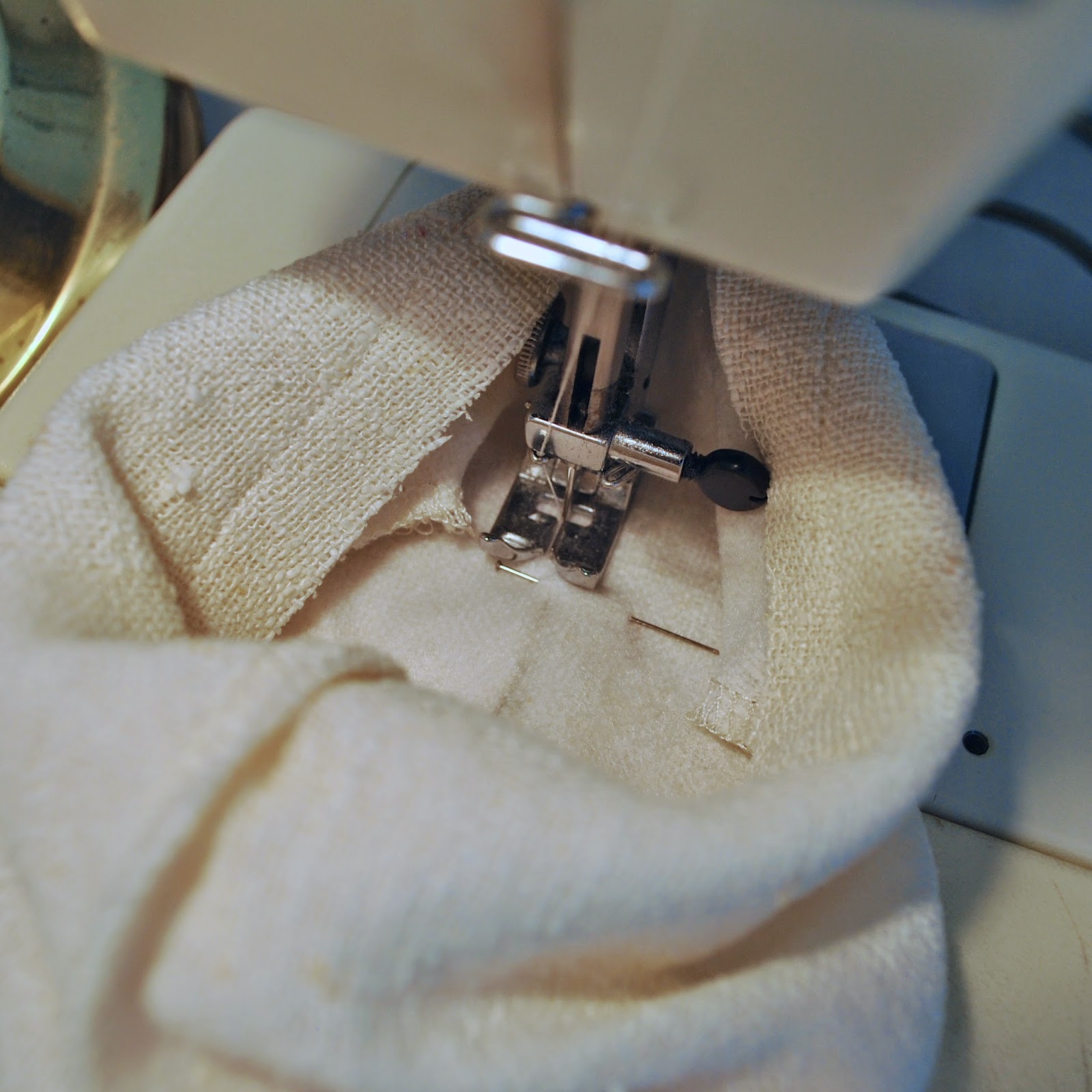 Turn out and understitch the sides of the slip and the sleeve hem as far as possible.