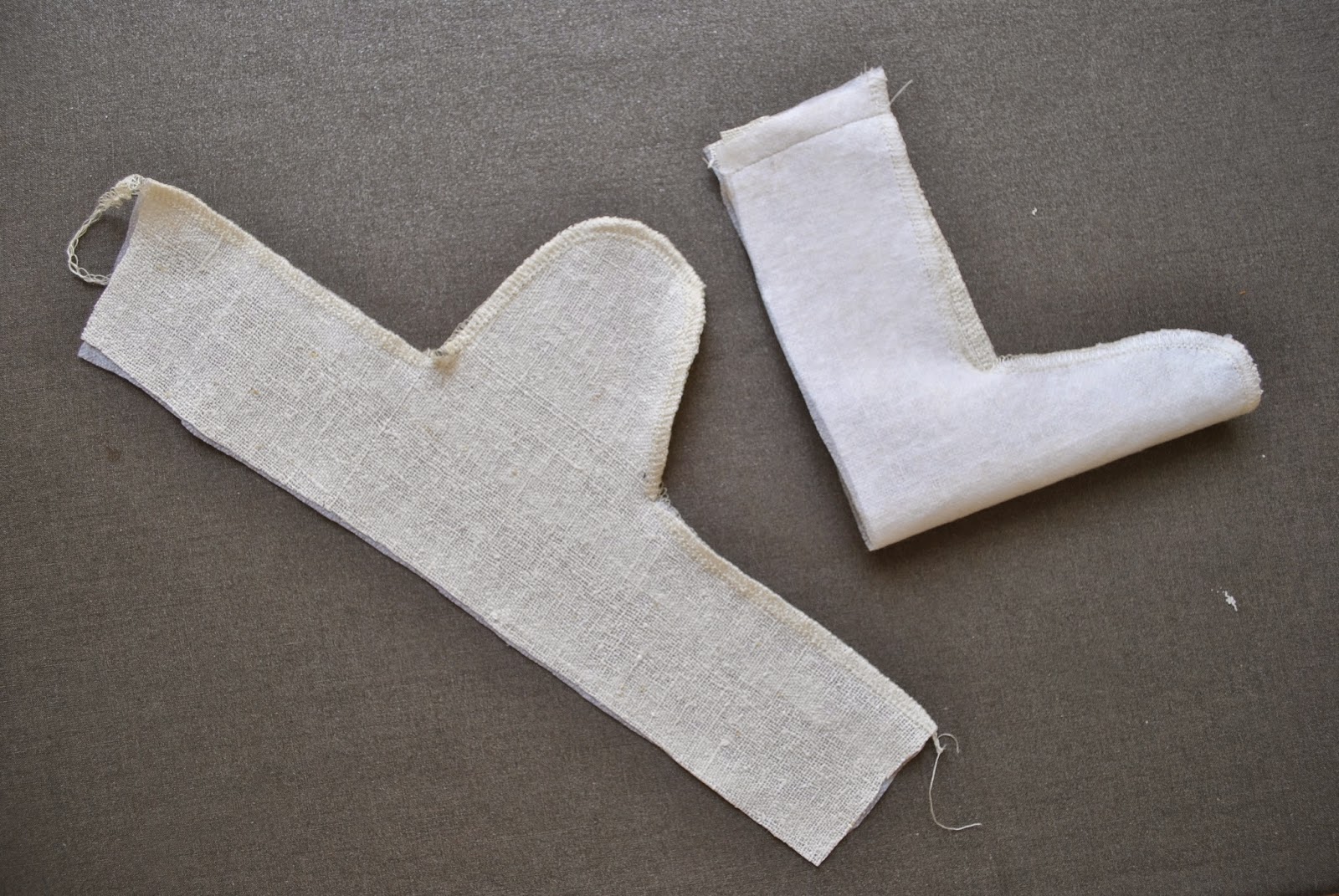Cut a matching facing for each sleeve, with an allowance for the slit facing situated in the centre. Mine is 6cm (2 3/8″) deep for a finished depth of 5cm (2″) , and the slit facing is 7cm (2 3/4″) wide and 13cm (5″) long for a finished slit length of 9cm (3 1/2″).