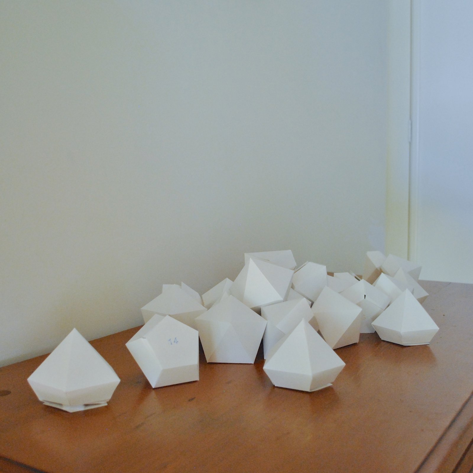 I used some card stock that Mum and Dad gave me when they cleaned out their shed…. it was perfectly clean and in very good nick! traced the template and cut out 24 identical shapes.  So my icebergs are all the same size.  In retrospect, if I was going to do this again (unlikely) or even if I re-use them for next year I would mix it up size-wise by printing out the template in two or more different scales, say 75%, and maybe even also as small as 60% to get a little range of sizes.  I think they’d look pretty cool with more of a variety of sizes, but I’m ok with how the arrangement looks for now.