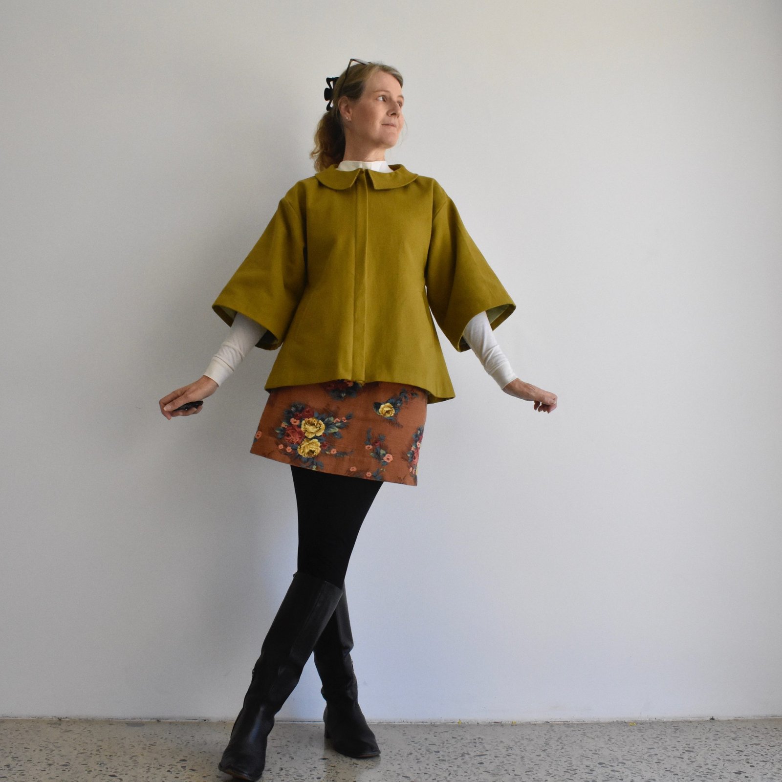 The fabric.. oh btw, I bought it in Japan, in Stripe & Check in Tokyo during our last trip there… and posted about here.  It’s a beautiful, quick thick brushed cotton, almost like flannelette but more solid and “coat-like” in its weight and feel.  The colour!!  Isn’t it gorgeous?!  I’ve already mentally dubbed it my pickle jacket, for some reason…  🙂