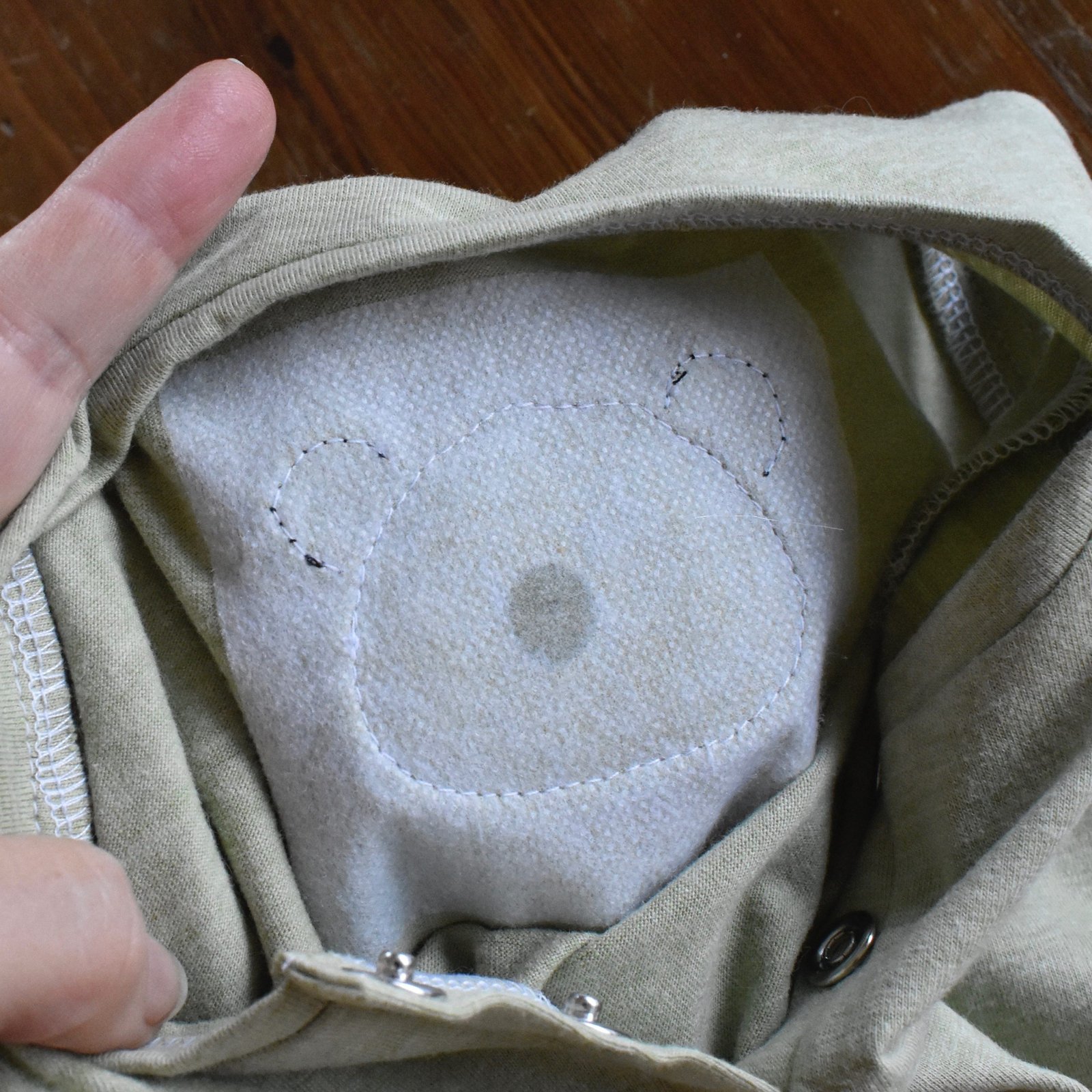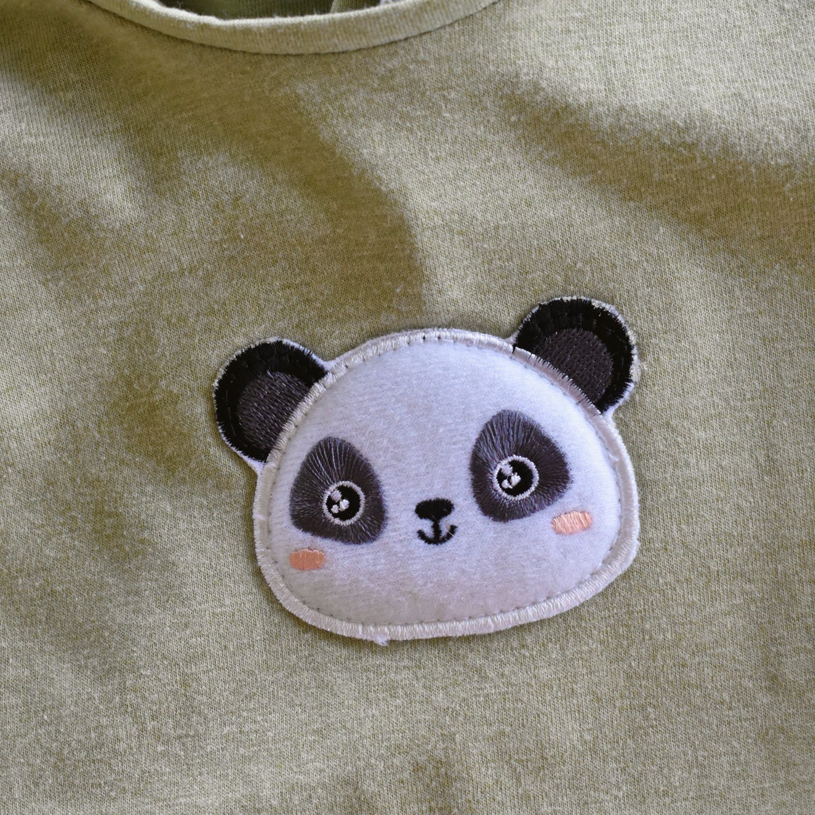 The panda patch is an iron-on from Spotlight; I ironed in on and the also stitched it on too, just because I don’t actually trust the long-term adhesive capability of these things to be honest. Before stitching, I also pressed a layer of lightweight iron-on interfacing on the inside of the romper underneath it too, for stability.