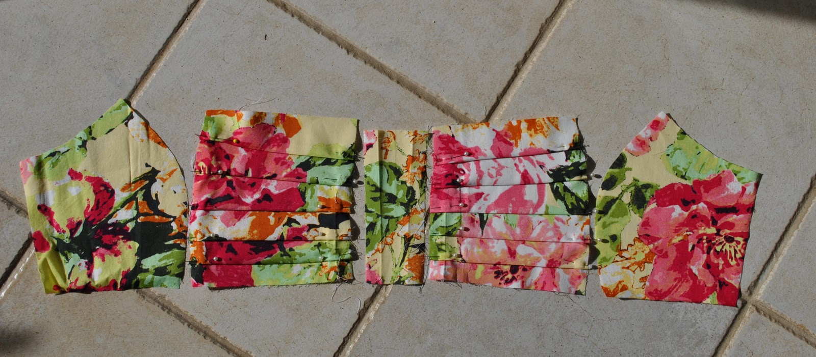 Sewed the side fronts to the centre front piece…  For the shoulder straps I used two rectangles, slightly curved… pinned them how I wanted them to be on the bodice, with a little pleat at the bottom…