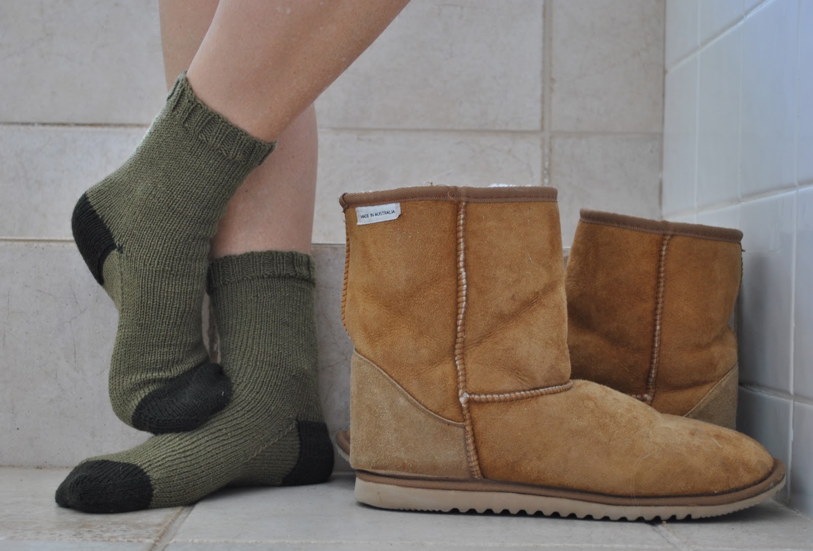 They just happened to be lying around in our bathroom where I took this photo, so I decided to put them alongside for fun in the photo, and because the colouring went well with my new socks.  You might be able to just read the label, “Made in Australia”.  These are of course REAL Australian ugg boots, made by REAL Australian manufacturers, and no American company naming itself the Australian Ugg Boot Company can EVER take this away from us.  The legal action attempted by US companies to prevent Aussies using the ugg name caused huge controversy here in Australia.  I mean, how would they like it if Aussies started up a company calling itself Genuine US Cowboy Boots, trademarked the term, and subsequently threatened to sue any US manufacturer who was using the term “cowboy boot” as a selling point?