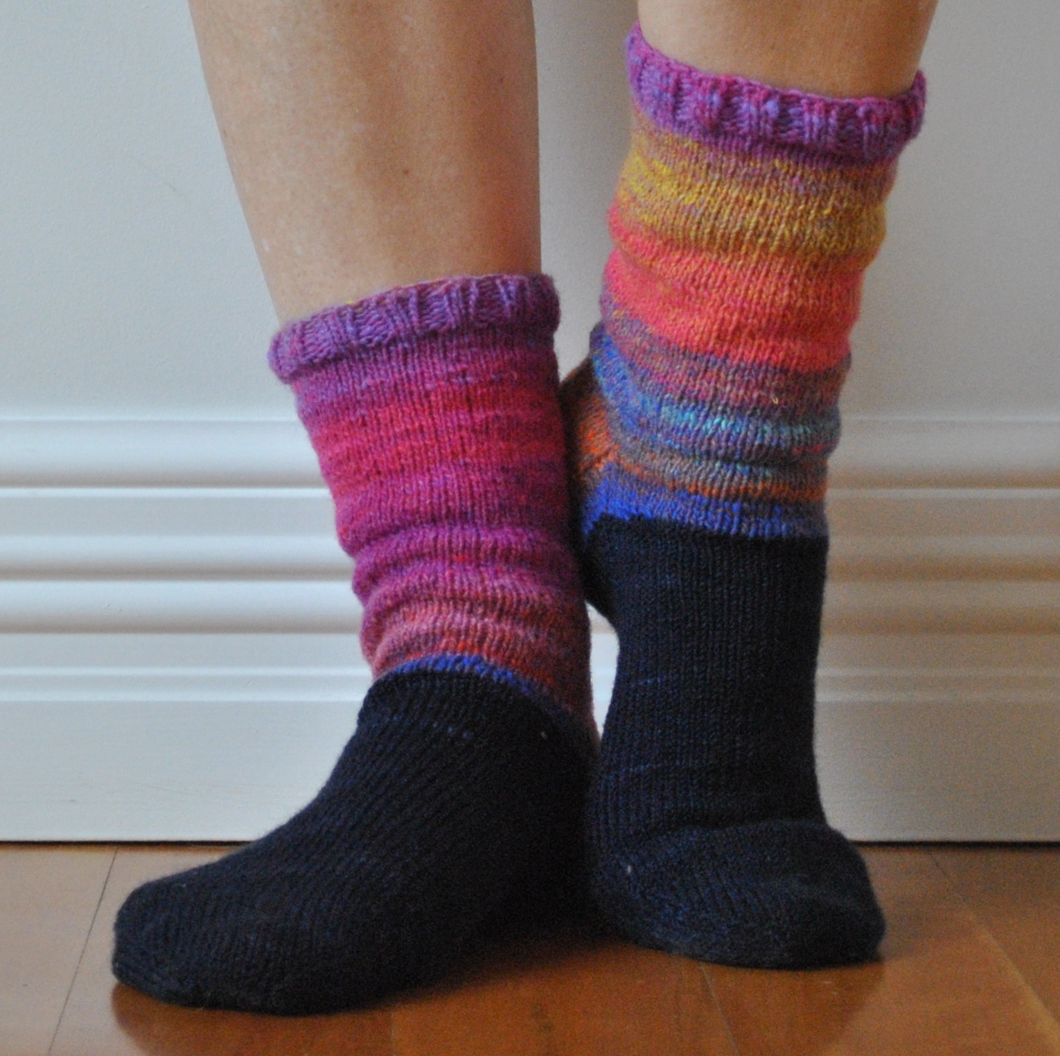 Just in time to see in the last days of winter (yay!) last night I finished some new SOCKS!! I’m dubbing these the “Semi-Fauve socks”; as obviously only half of each sock bears the wild vivid gaudy colours that was one of the the hallmarks of the Fauve school of artists. From the heel down to the toe is knitted in Koigu KPM sock yarn, colour 2410, a more sombre but still intense navy blue.