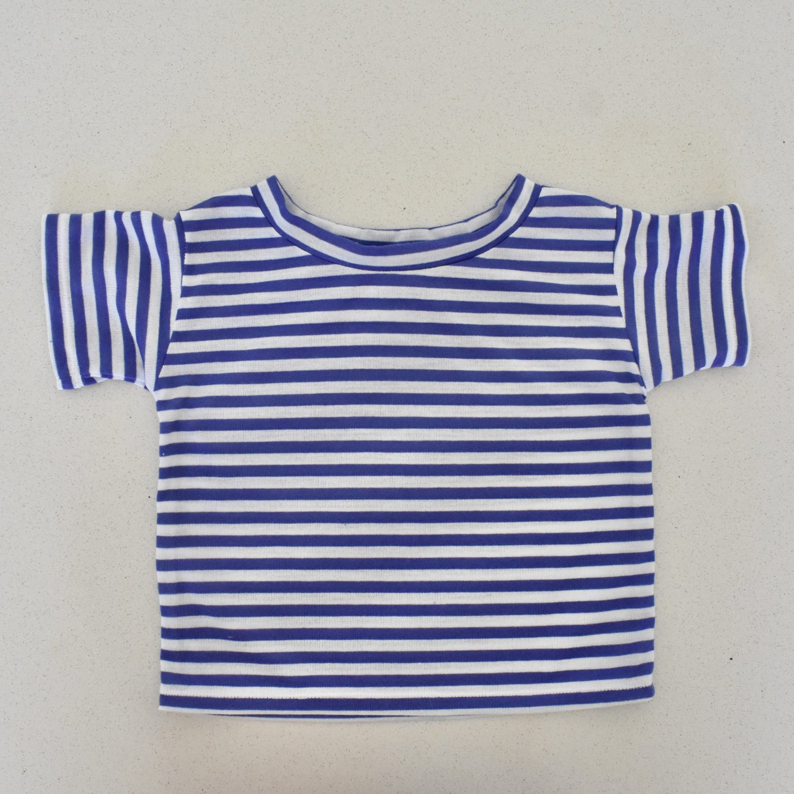I used Butterick 5510, a great little pattern that I should probably buy in a bigger size now! The blue and white striped jersey was tossed out by my friend N during her fabric purge recently. It’s quite nice stuff, if you don’t mind the suffering that comes with matching stripes in cutting and piecing. Fortunately I don’t mind this toooooo much. Maybe just a little, but only if it’s just every now and then.