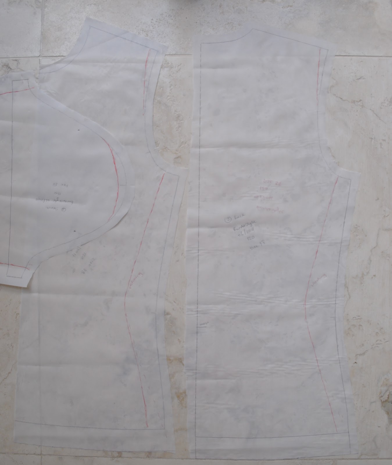 The red pen below is pointing to a bodice side seam.  Can you even see it? (said with an unseemly lack of humility)