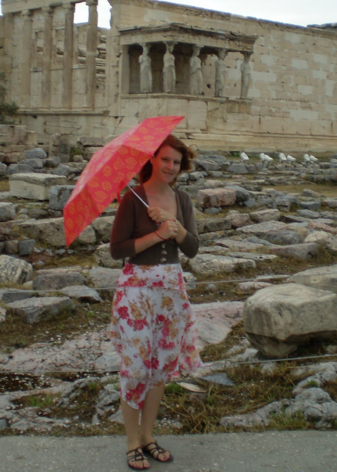 Anyway, I made a new outfit for myself, in anticipation of the slightly cooler weather that heralds the onset of autumn, hurrah. The fabric is a really nice, crisp, slightly crinkly, and reassuringly sturdy ticking striped cotton, ivory with steel blue stripes, and a silver thread running through. I bought it years ago from Fabulous Fabrics, and it’s been one of those lengths of fabric that I’ve “saved” for really a nice project, one far off day. It’s always a lovely thing when that far off day finally dawns.