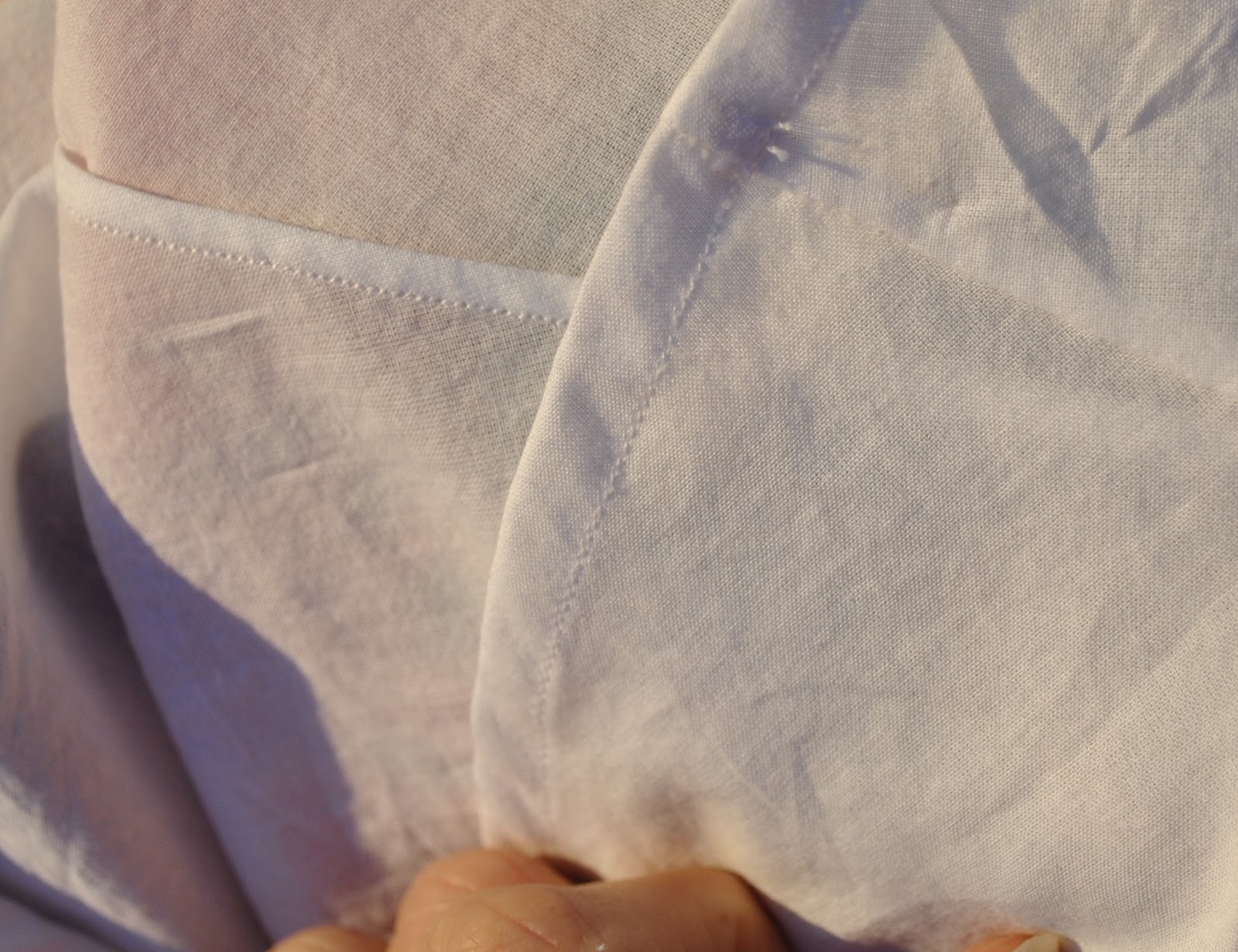 The lower hems on both dress and petticoat are not finished because these fabrics will not unravel or fray.  I just cut the fabric as straight and as smoothly as possible.