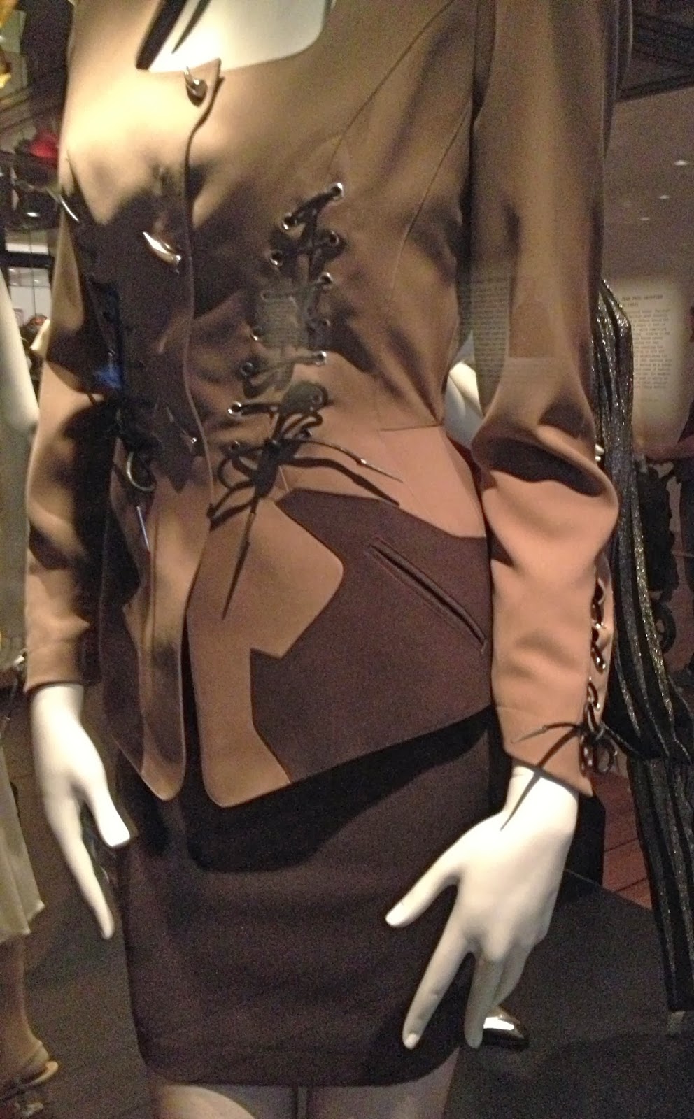 Thierry Mugler, 92.  That chocolate brown inset pocket piecing, lower front.  I mean, omigod.  A seamstress can but gape in awe.
