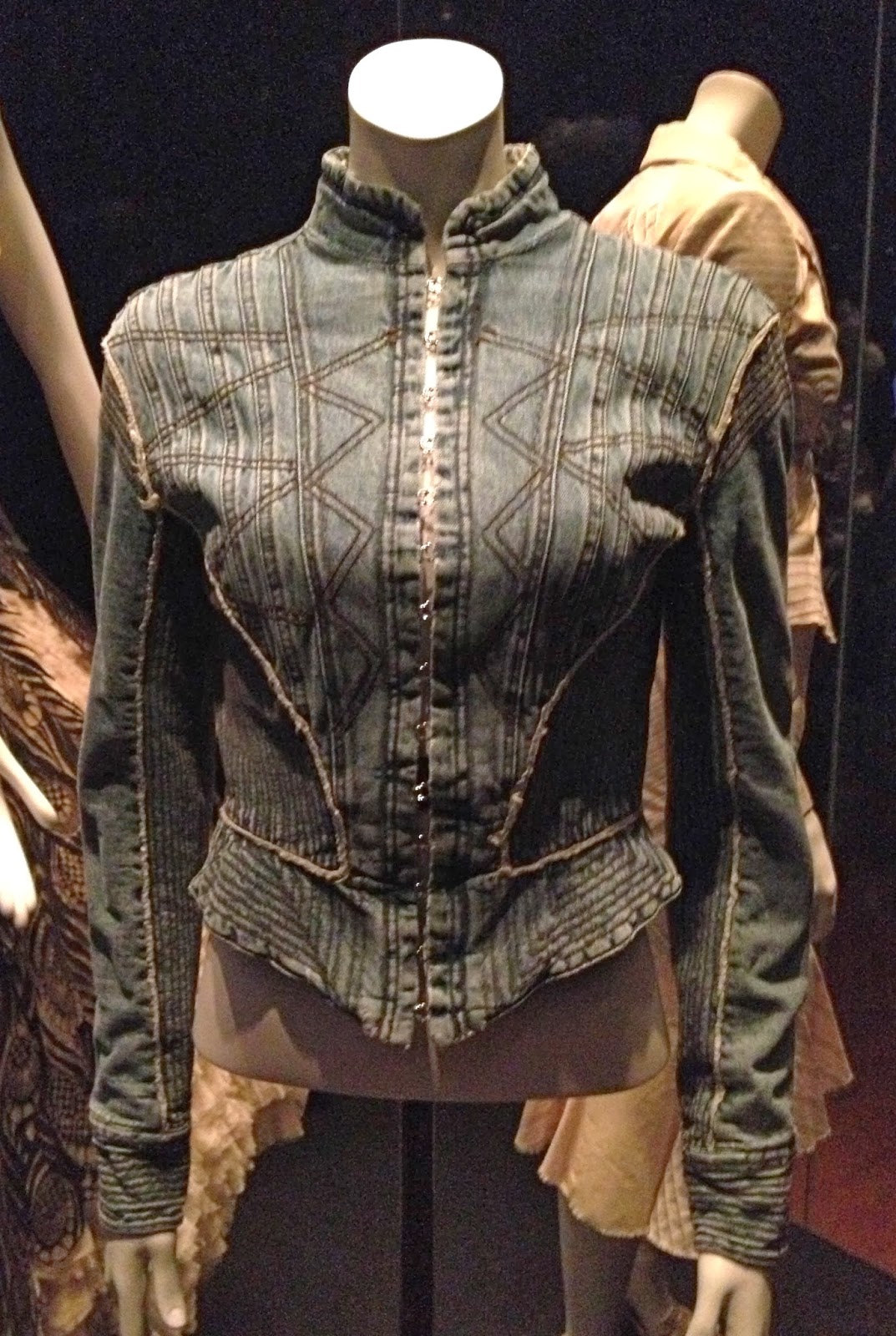 Alexander McQueen, 02-03; denim jacket, raw edges, an overall lived in beaten-up appearance like a favourite pair of ancient levi’s.  But with structure and form, and a mass of decorative double rowed top-stitching; a nod to the flat-felled seaming that is a seam-strengthening functional feature in the aforementioned jeans..