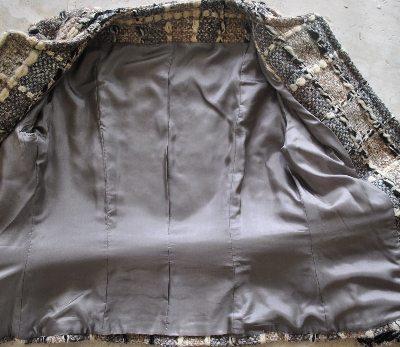 Left off the sleeve vent and cuffs, instead inserted tabs with snap closure inside the lower end of the sleeve seam, sewed the sleeves closed to the end and hemmed over the raw edges of the lining. The lower hem of the jacket also encloses the raw edge of the jacket lining inside