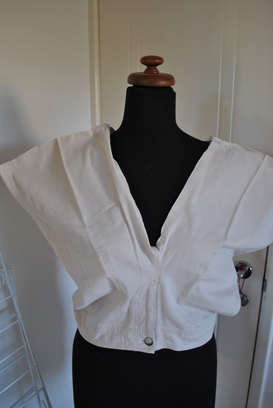I drafted a completely different collar, a sorta slightly curved rectangle, because I wanted more of a wide standup collar than the little fold-down one in the pattern…