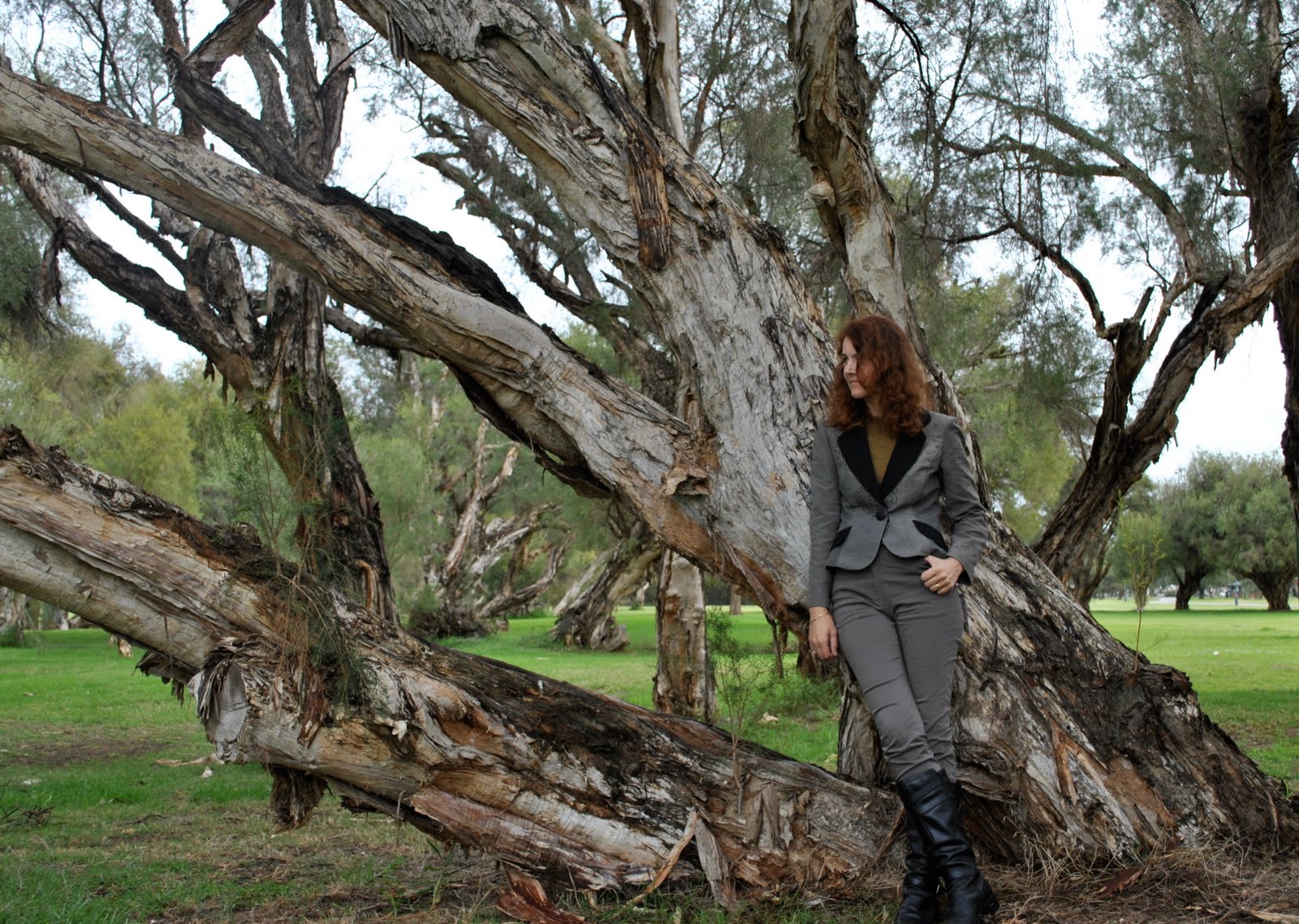 Below left; Grunge, anyone? Probably not a look rocked by the over 25’s very often, but I think the classic tailored lines of the blazer lift the whole tone of this look up a tad and make it a very viable weekend bushwalking and picnic option for a well-dressed woman. At right; Naturally the obvious finishing touch to a business appropriate outfit (please just pretend I am wearing flesh-toned tights, which I do not have on in this photo and which would probably be mandatory in the office with an above-knee skirt, right?)