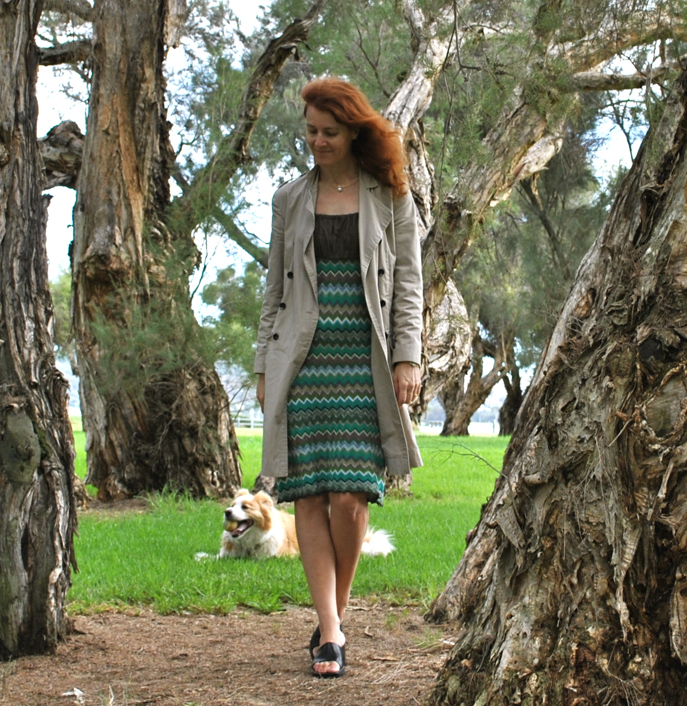 So, I do feel a tonne more comfortable and less self-conscious wearing this dress when I have a big coat over the top, like my good ol’ trench coat here. And can I say, this trench coat has been such a goodie?? I love it utterly. It was my good coat when I first made it, but when I made another one, I started to treat this one as some old throw-on thing, to be worn whenever without thought to consequences, didn’t care what happened to it. When it gets dirty, I toss it in the washing machine on an ordinary cycle. Well, I figure, the materials are all 100% cotton, so how awful could that be? Still, the first time I tried this I held my breath, anxious about its fate. Anticipating a brow-beating, “what have I doooone??!” moment. Which did not come. My trench coat emerged from the washing machine in perfect nick, which earned it double gold stars and a place in my “have-forever” pieces.