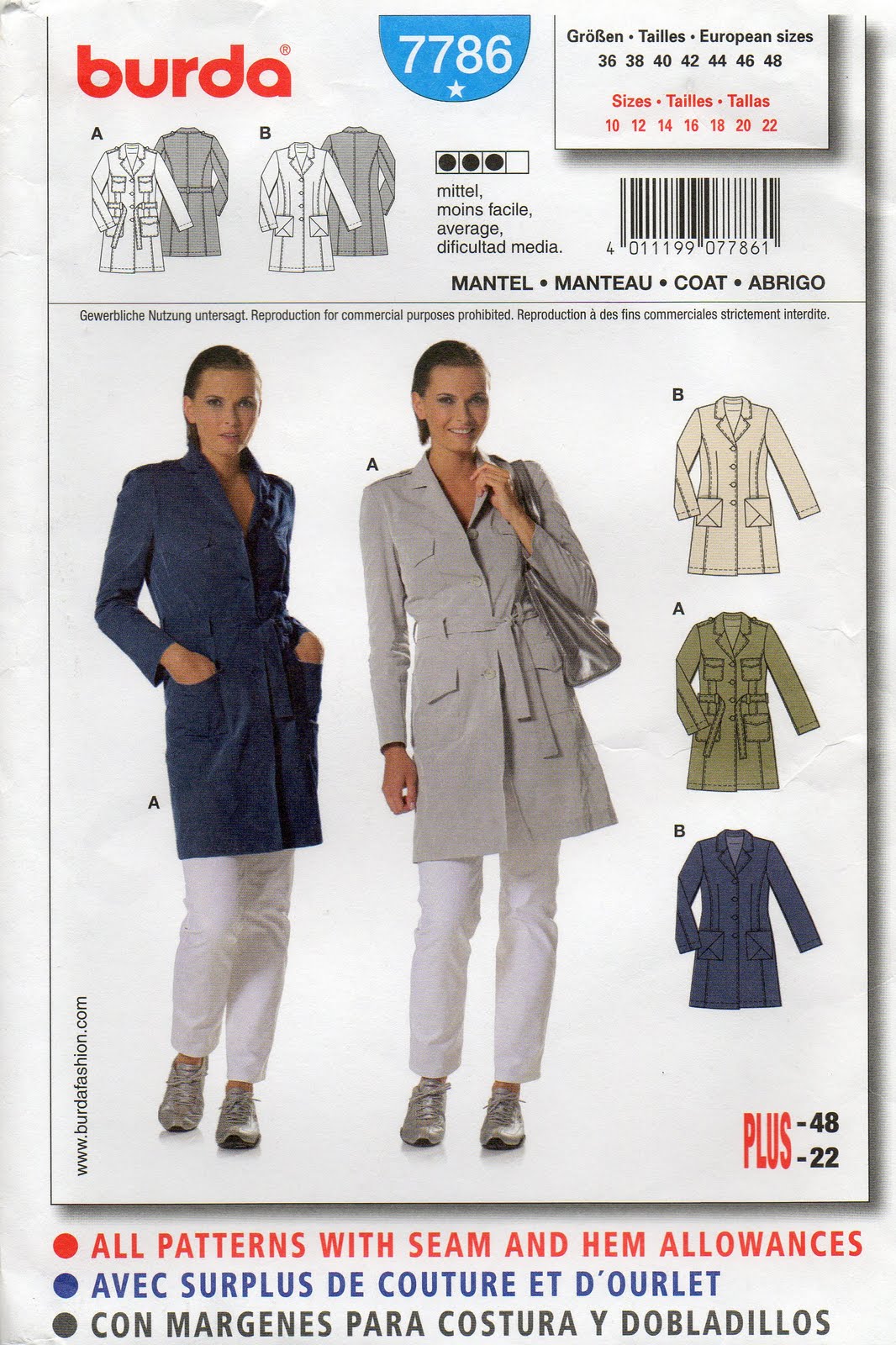 Trench coat; Burda 7786 modified to be double breasted, beige cotton, plaid cotton lining, details here