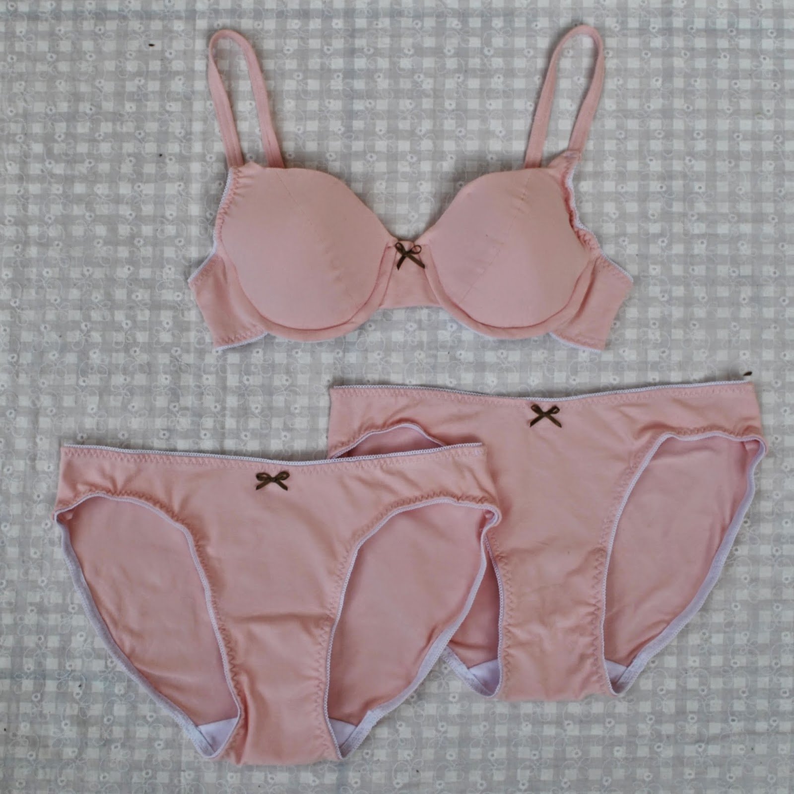 Fulfilling a need rather than a want, I made another lingerie set for myself. It’s not speccie* but just a bread-and-butter everyday set, with a Tshirt bra and two pairs of matching plain undies. The fabric is a strawberry pink…