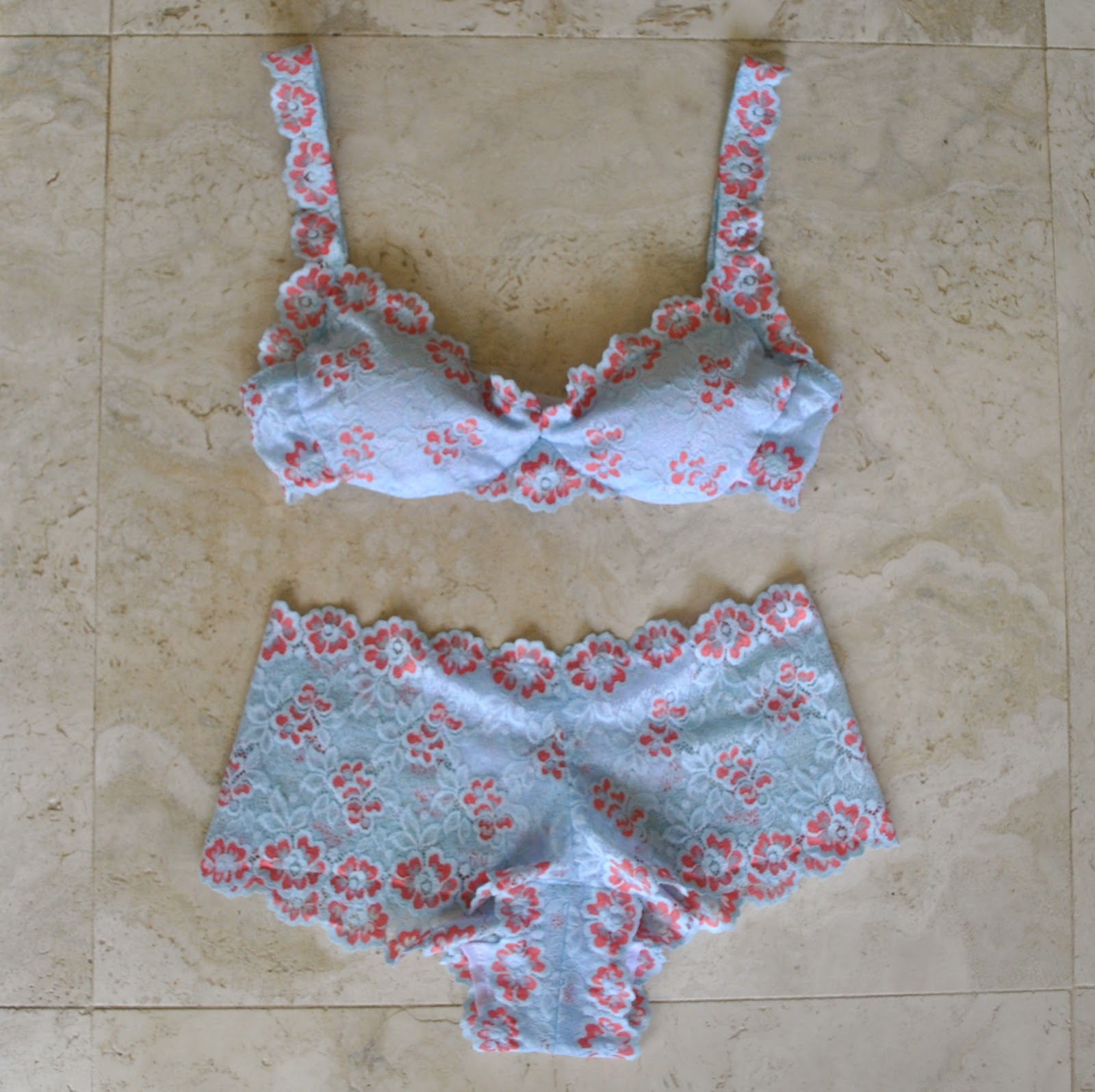 two pairs of knickers. This worked out well, because I think two pairs of undies per bra is a good ratio to live with. The panty liners I cut from an old Tshirt.