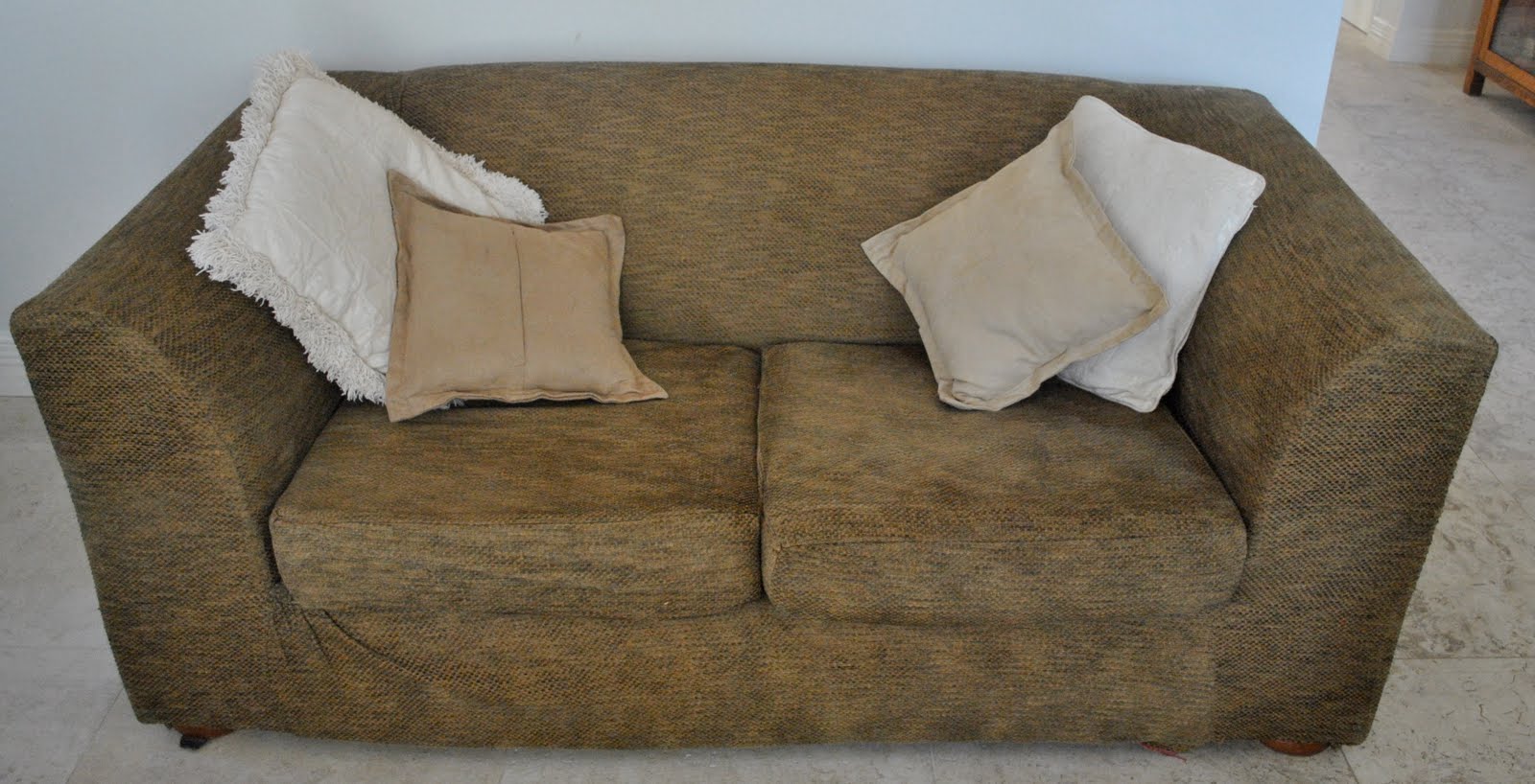 We bought this lounge suite twenty years ago, and I’ve recovered it approximately every five years. I’ve found the old covers are really on their last legs by this time… yup, we have three teenagers, three cats and a dog, so I guess we are pretty tough on our furniture! This is the fourth time I have re-covered this lounge suite and I think the outcome gets better and better each time. Nice to know practise really does make perfect, yes?!