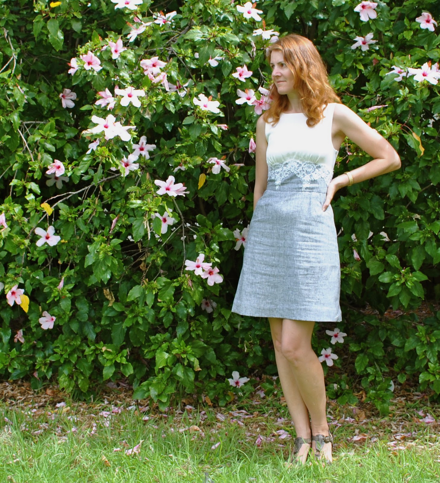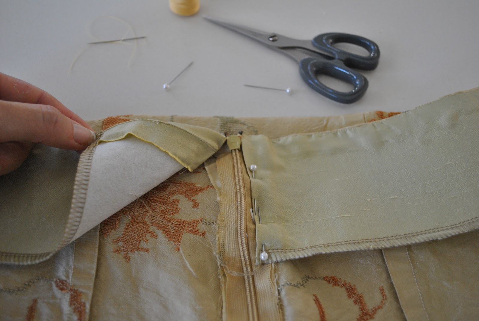 I omitted the belt carriers because I saw no need for them, also to put the inseam pockets at this level of the dress. If I wear a belt with this I will have it around the waist.