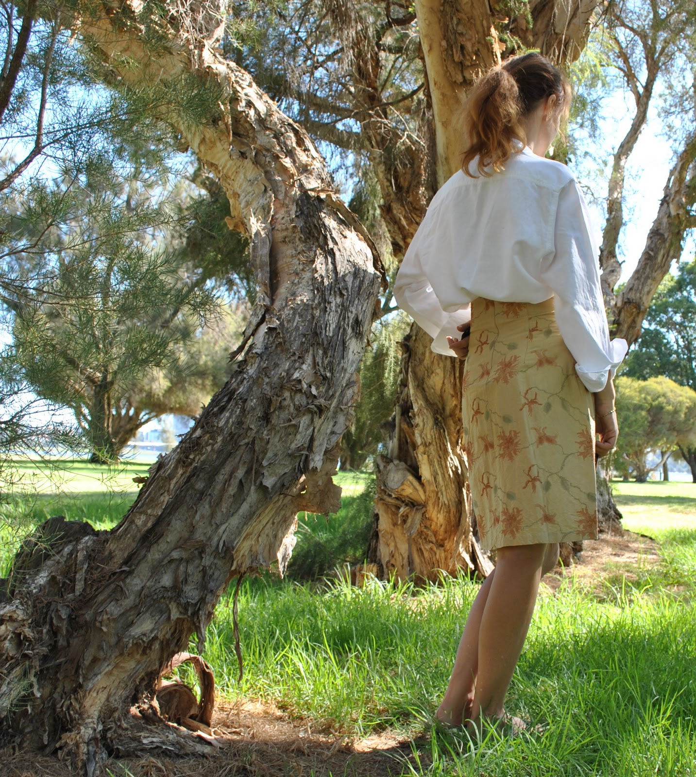 My alterations to the pattern were namely, the addition of buttoned arrowhead tabs to the shoulders and also inside the sleeves so the sleeves can be rolled up and buttoned to elbow length (probably the way I will wear it most of the time!), the addition of inseam side pockets (well, really, why are these not in the pattern anyway, hmmm? tut tut, just no excuse, imo), and hemming the lower edge in a nice classic shirt curve. Plus, instead of the straight up and down side seams of the original, mine is shaped slightly to give it some vague hint of a waist.