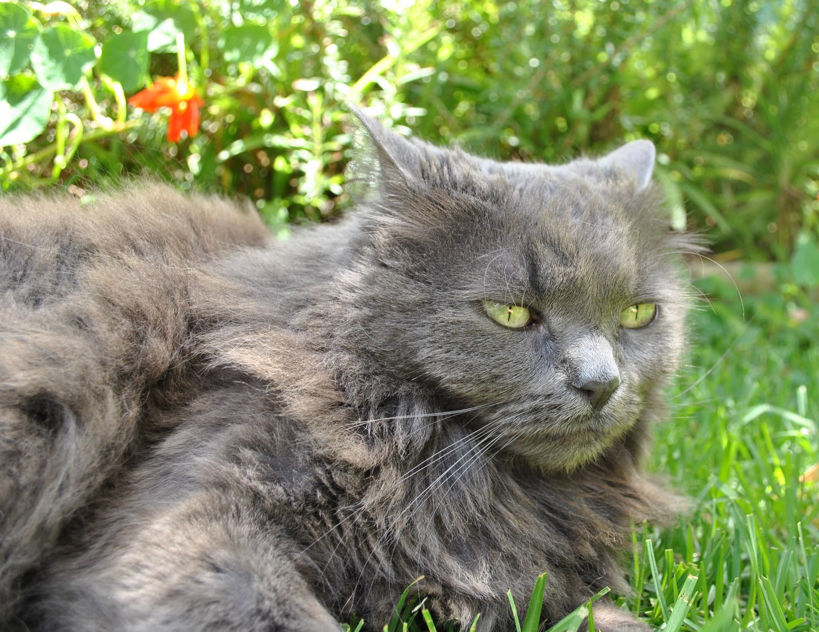 This week I wanted something toxic. Something urban and nuclear-waste. Something neon and horrifically bad taste. So I was sitting outside and painting this on when I was joined by a friendly and furry lovely in the mood for companionship. She came purring over and flopped down beside me and as she blinked lazily at me it struck me that the crazy shade of my nail varnish exactly matched the golden-green luminosity of her eyes, how they appeared bathed in the reflected glow of warm sunlight off the bright new grass… at once the colour became less toxic to my eyes and suddenly one that was rather lovely, natural and beautiful.