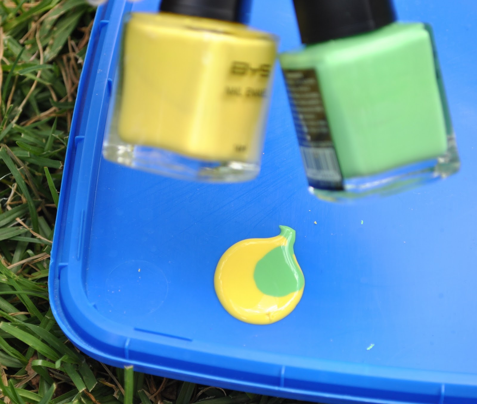 I got this fantastic murky olive shade by mixing three colours; gold, mint green and black. I think it is perfect for autumn!