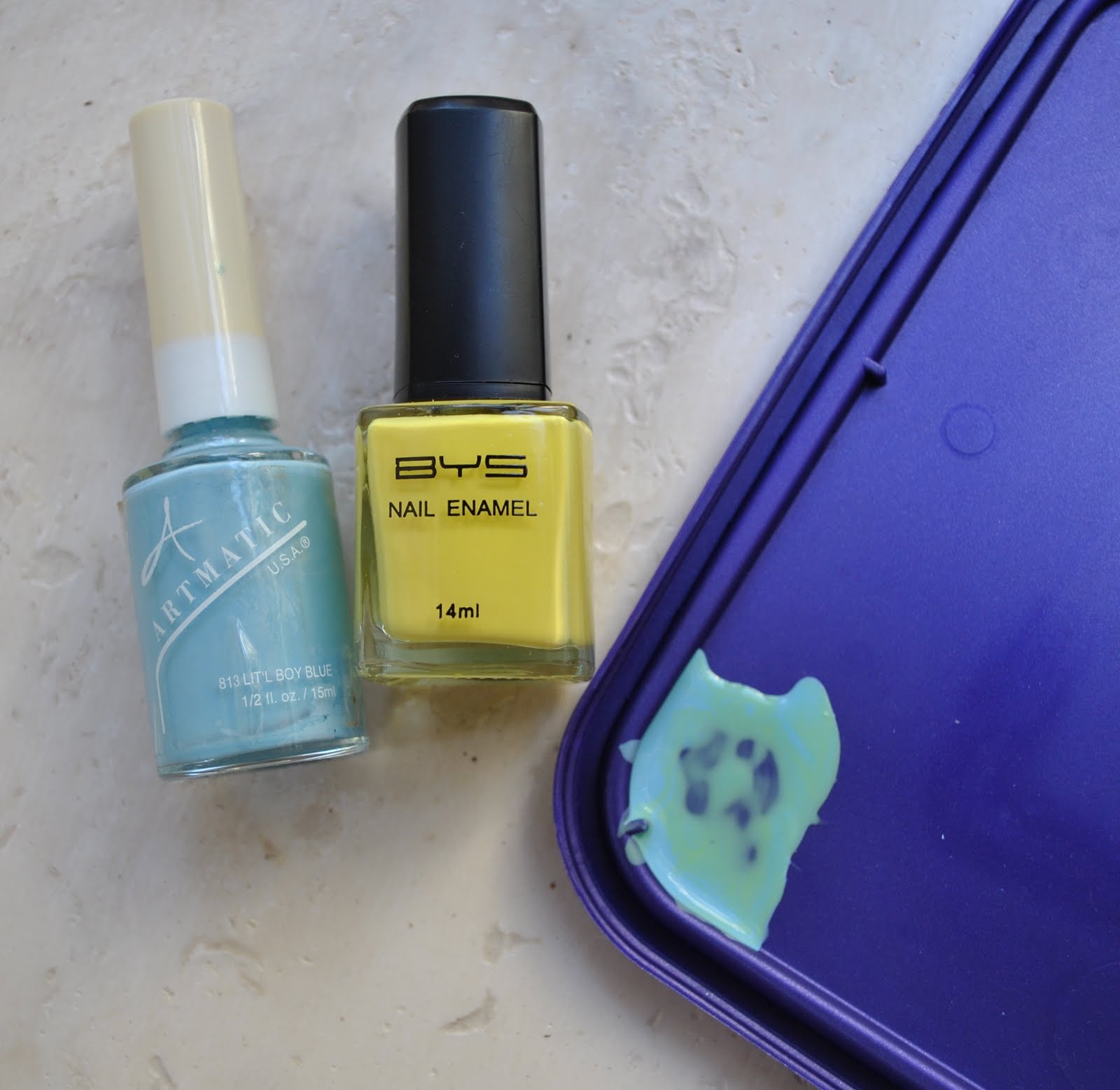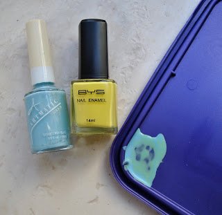 Disclosure, in case you are wondering: this is not an endorsement, and this was not a freebie; we saw and purchased our nail polishes at a craft fair, of all places! and paid full price.