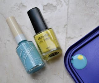 Sometimes (occasionally) I buy a colour simply because I know it will be a goodie for mixing with others to get new colours. Such as white. Not always, I often then get side-tracked and lazy and just wear even the more unusual colours straight as they come out of the bottle, prompting questions such as “why the turquoise nails??” and having to come up with an explanation that doesn’t involve a fancy-dress party… Fortunately I think Perth is becoming more switched on to exciting new nail colours such as the ones I like. Whatever, I really wanted this particular shade of heavenly muted duck egg blue for this week…