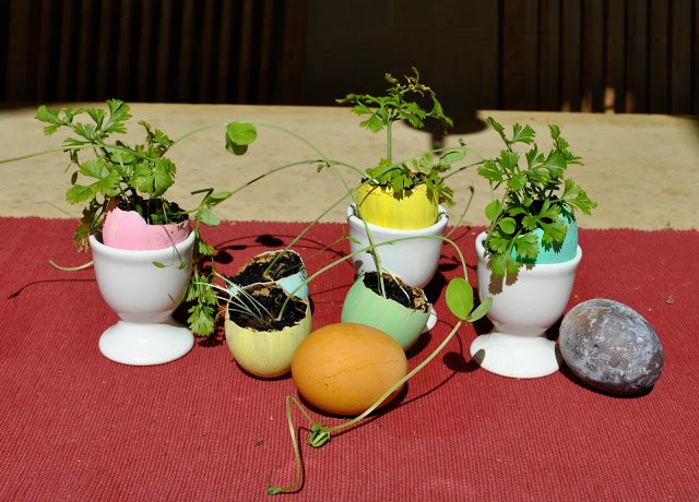 1: I saw this idea for seedlings on Better Homes and Gardens and thought awwww, how cyooote! So had a go myself…. these hold sweet peas (yup, planted on St Patricks Day, thus earning myself a gold star for being “traditional”) and parsley. After this weekend, the bottoms will get lopped off to give the roots somewhere to escape, and they are going in the garden. But in the meantime I think they have made quite a nice Easter-y table display, yes?