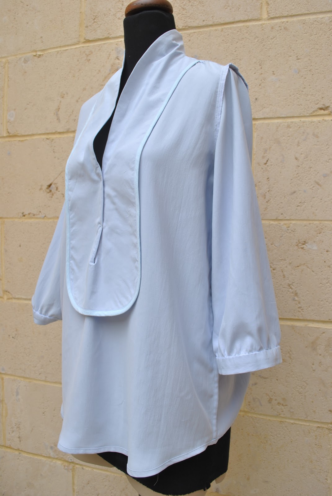Another modification was to make it a tunic top rather than a shirt, with the front cut in one piece and with a half opening.