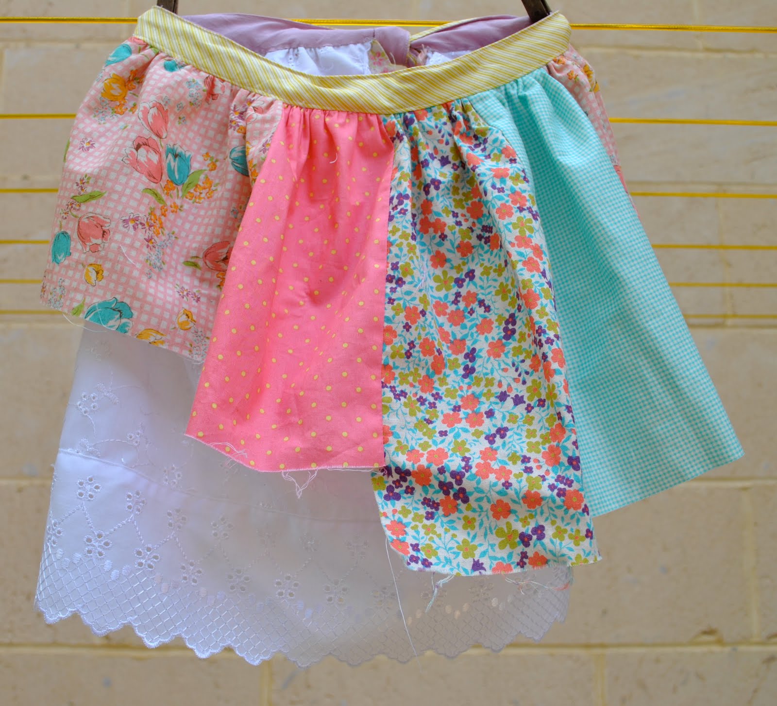 For this skirt I bought this row of pretty patches joined together.  The idea for this skirt came from the very creative Sophie who owns and operates Materialize.  She had made some adorable patchwork tutus for very little girls and had joined this strip together like this when I bought it.