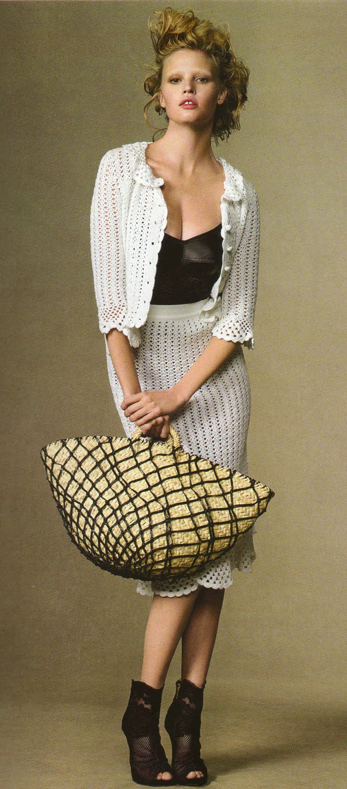 I don’t wear the black-and-white look very often but love this D&G outfit and was inspired to give it a go. Being from a European fashion shoot it’s a springtime outfit, and I do think of the black-and-white look as being a very spring-y colour choice. Now I’ve got it on though I’m very pleased with how this ensemble looks. I also thrilled at how this skirt, first posted here, is shaping up in my wardrobe. (And no, it’s not actually made from a lace tablecloth, but certainly inspired by them…!) When I made it I thought it would be too summery to wear outside of the summer months, but am feeling very comfortable in it today with socks and boots. It’s actually a tad warm for boots but I’m going on to a fashion parade tonight and the nights now are cool enough that my toes cry out for sock coverage… so a little overheating during the day is necessary here.
