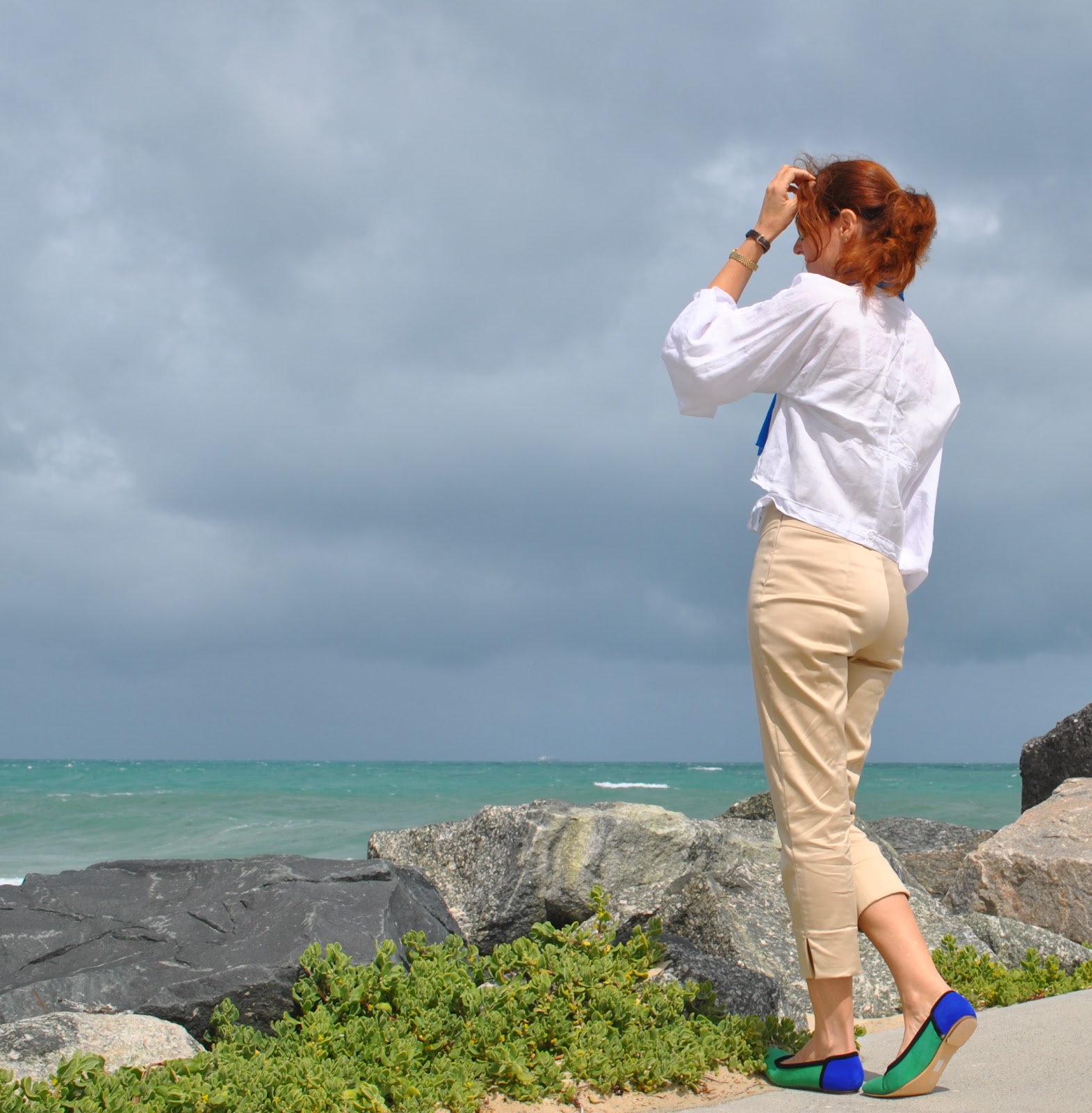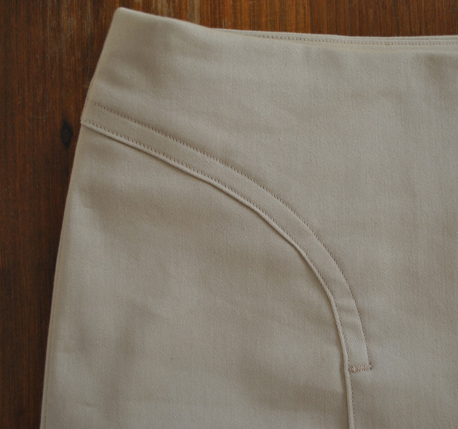 These ones have very up-to-the-minute, turned-up cuffs on cropped legs, a good amount of room in the seat without being excessively baggy – remember these? although I ended up adoring those too, once I’d taken them in a bit!! The Jasmin trousers are easy and straightforward to make and I thought the fly front very well explained. I often find it helpful to draw and cut out a stitching guide for the topstitching of the fly front curve if a pattern does not provide it, and this one doesn’t; however it’s a simple matter to draw one up.