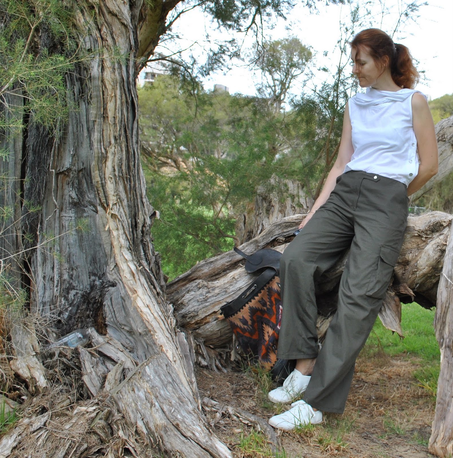 The pattern is the Jasmin trousers, by Fibremood. Fibremood releases a great little range of patterns each season for women and children, I really look forward to their releases and love checking them out. Each issue caters to a range of sewing levels, usually featuring some easy-wearing basics and styles that are both chic and comfortable, and a nice scattering of surprises with every issue. I thought this style was one of the surprises, but I just found myself homing in on it straight away! 🙂