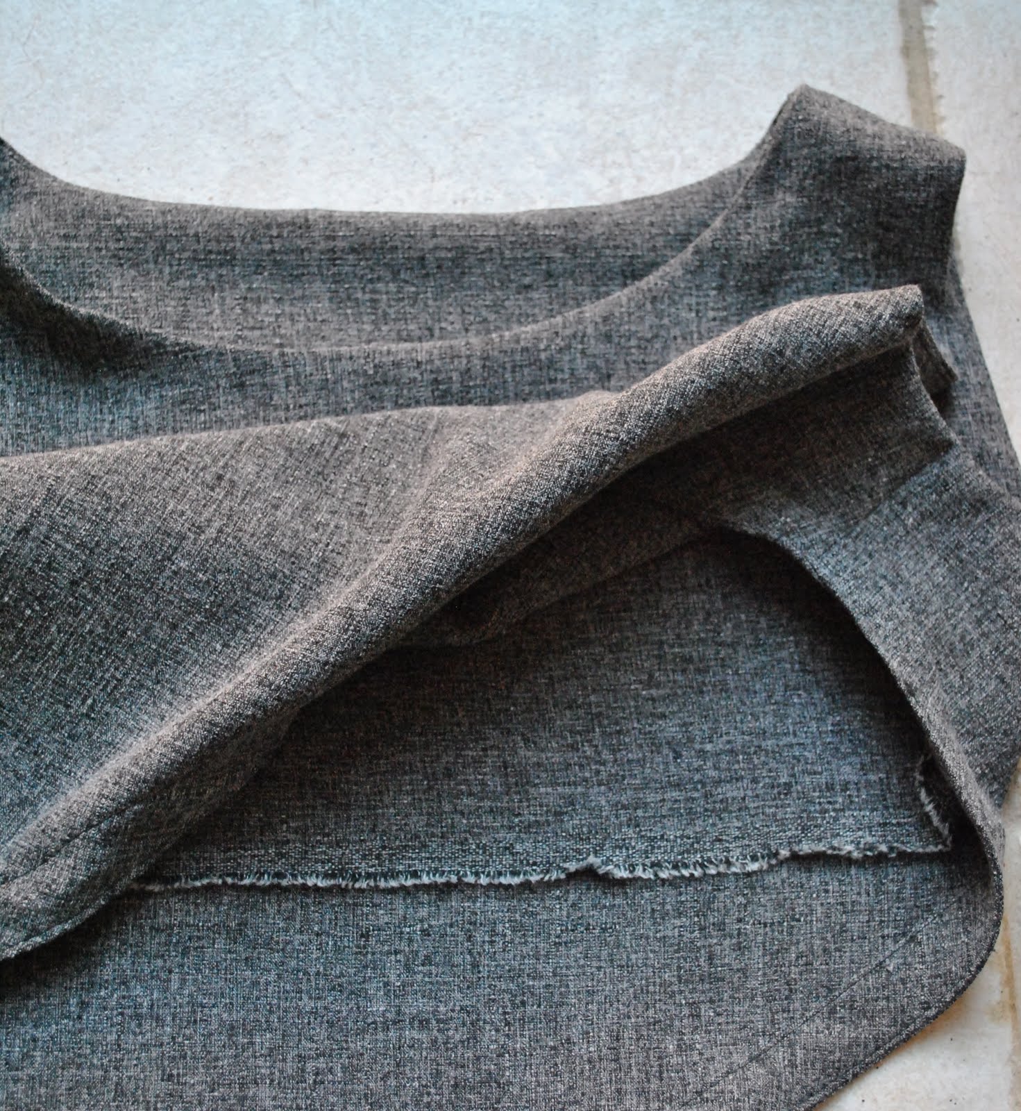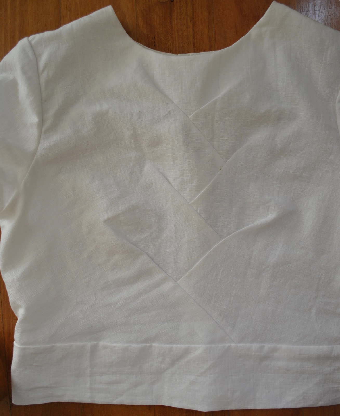 The darts/folds were a little tricky. In the photograph in the book, it doesn’t look as if there is any stitching yet, but just folded in place. When I first stitched mine in place they didn’t look nearly as nice… so I unpicked and re-stitched and pressed them one by one, slightly inside their seam allowance, so the stitching is hidden just inside the fold, about 3mm. This seemed to do the trick, and looks more like the picture in the book.